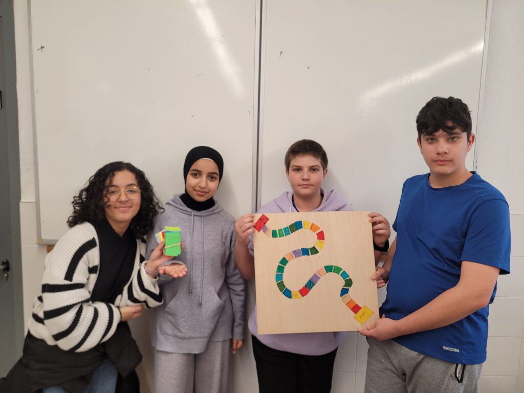 A l’institut, amb l’alumnat de 1r d’ESO, hem realitzat un projecte molt especial que ha combinat treball en equip, creativitat i coneixements de diverses assignatures. Els alumnes han dissenyat i fabricat el seu propi trivial, substituint les preguntes tradicionals per altres que ells mateixos han creat, basades en els continguts que treballen a classe. Així, el trivial no només ha estat una manera divertida de posar en pràctica el que han après, sinó també una oportunitat per compartir els coneixements de manera interactiva i col·laborativa entre tots els companys i companyes.