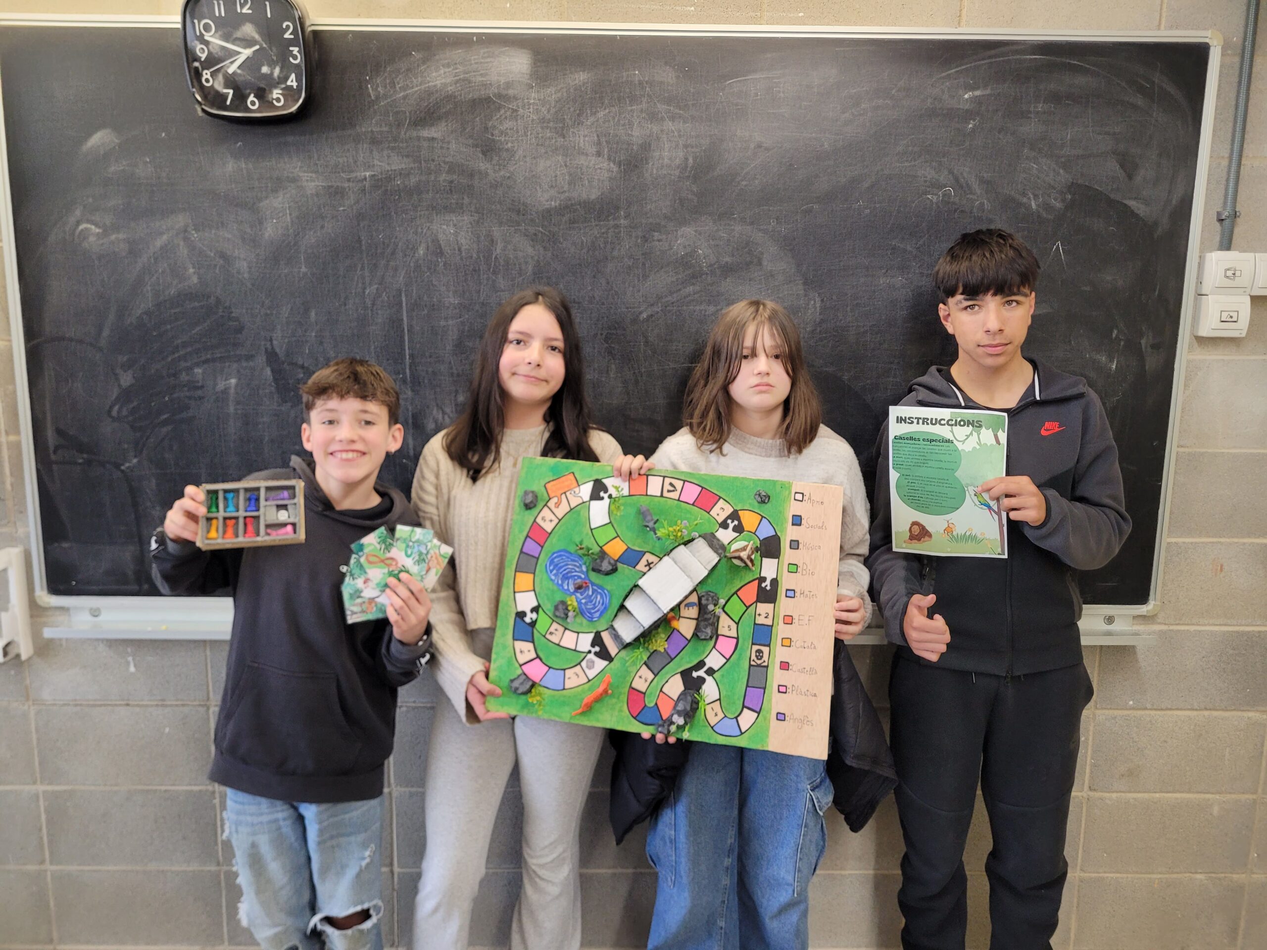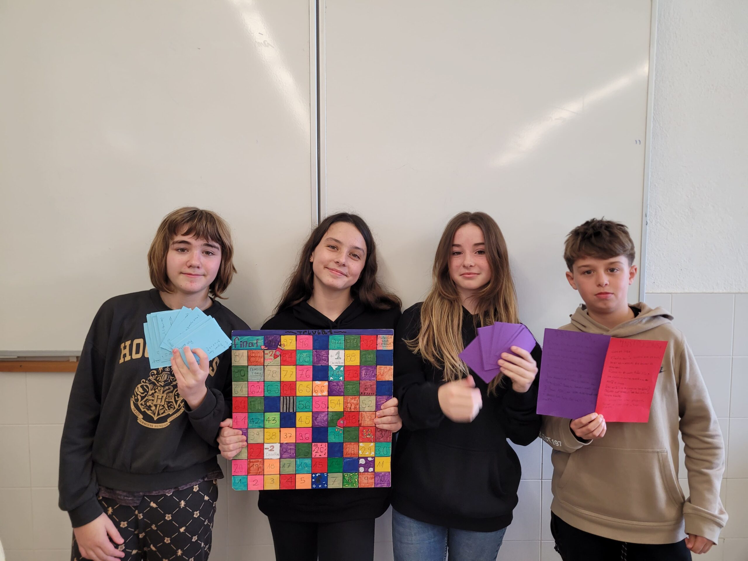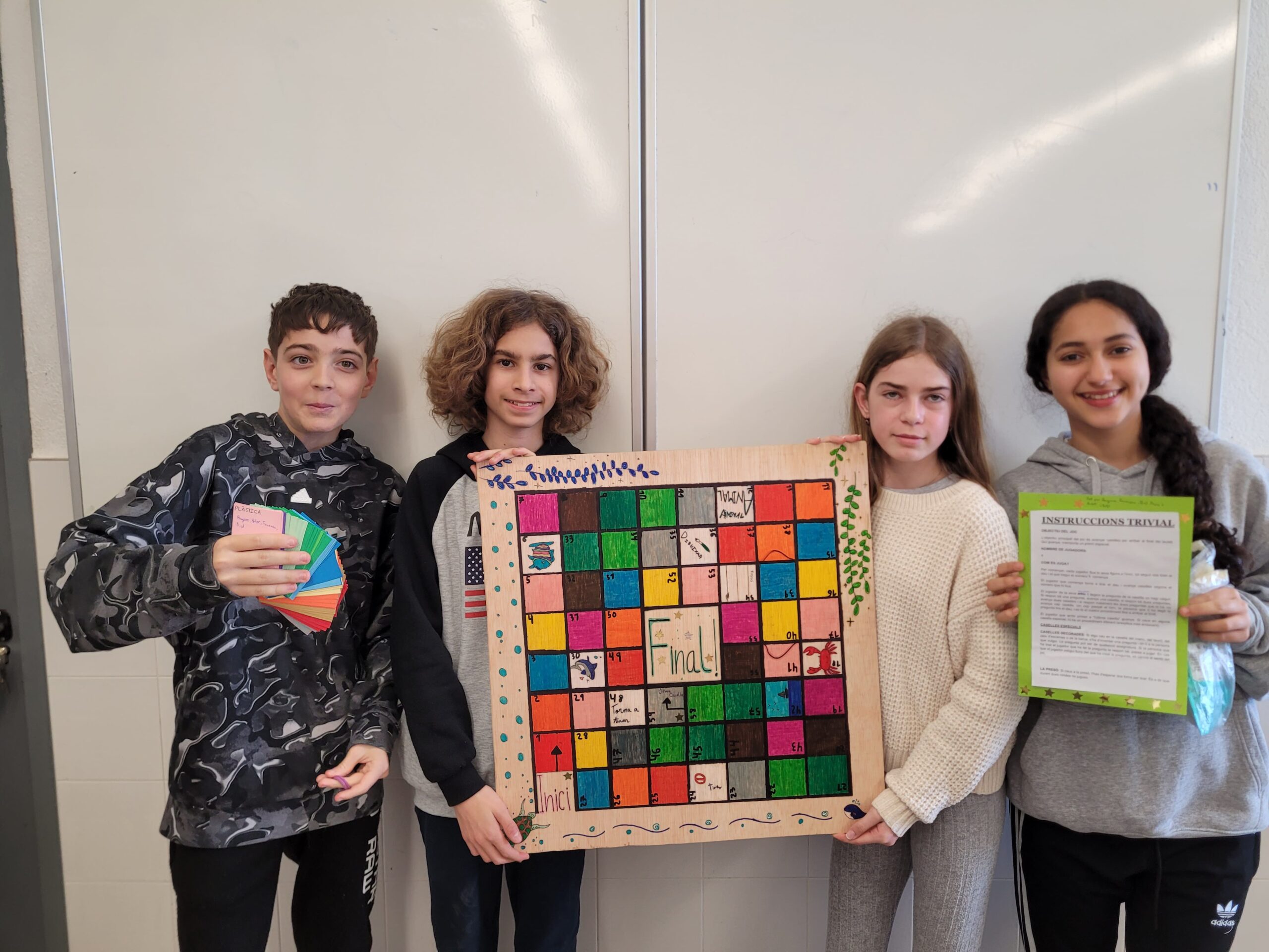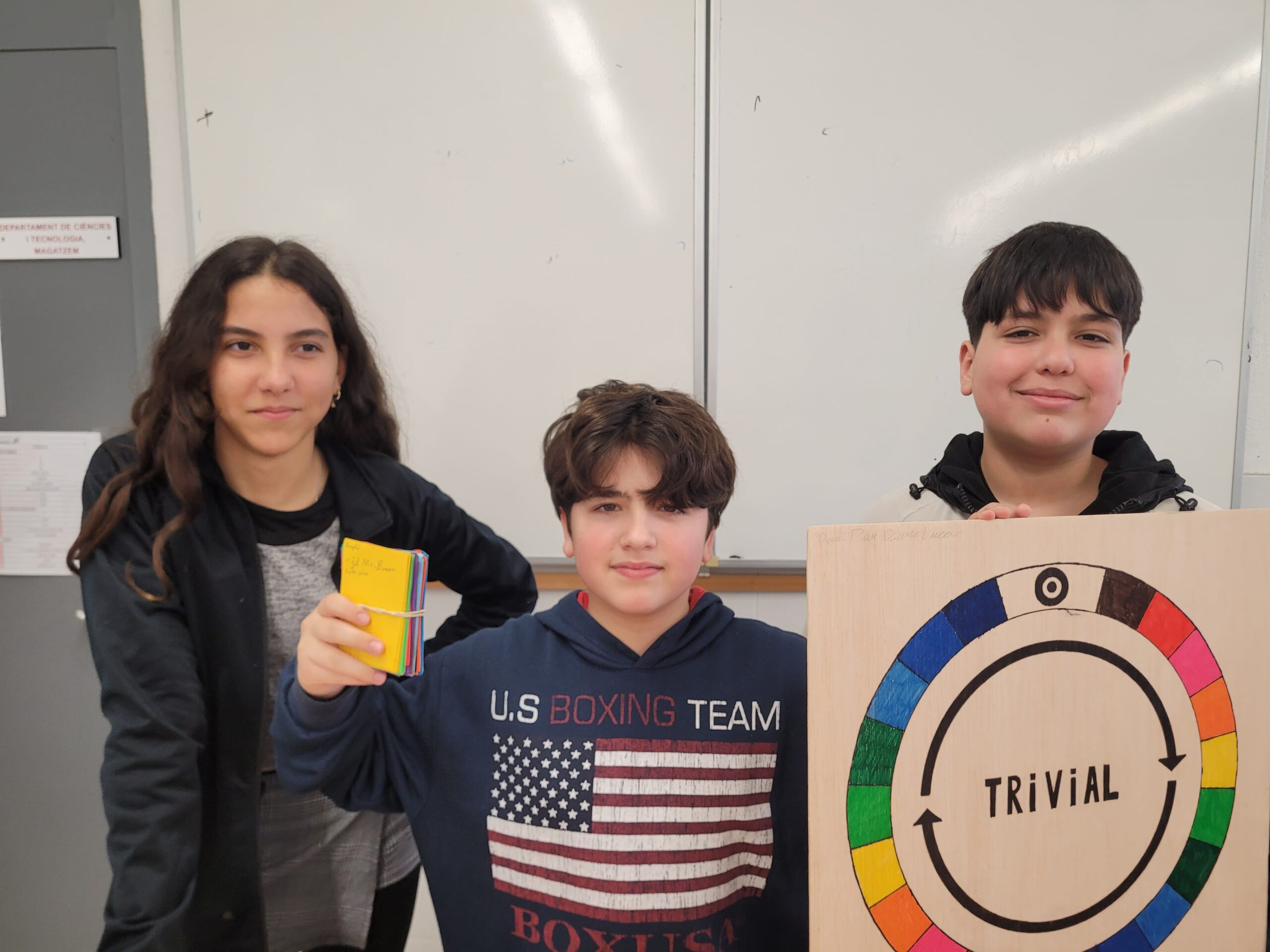A l’institut, amb l’alumnat de 1r d’ESO, hem realitzat un projecte molt especial que ha combinat treball en equip, creativitat i coneixements de diverses assignatures. Els alumnes han dissenyat i fabricat el seu propi trivial, substituint les preguntes tradicionals per altres que ells mateixos han creat, basades en els continguts que treballen a classe. Així, el trivial no només ha estat una manera divertida de posar en pràctica el que han après, sinó també una oportunitat per compartir els coneixements de manera interactiva i col·laborativa entre tots els companys i companyes.