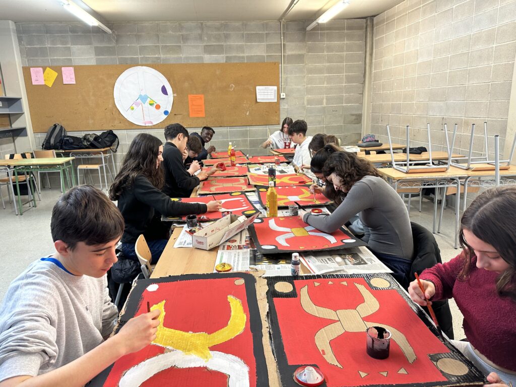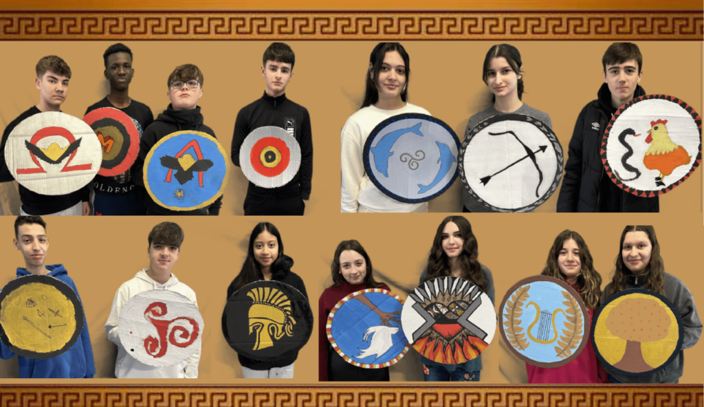Amb els alumnes de 3r d’ESO de Cultura clàssica hem estat tractant els exèrcits grecoromans, tot sabent com vestien i quines armes utilitzaven per anar a la guerra. Per això, ens hem posat a la seva pròpia pell: Per convertir-nos en un bon hoplita, hem creat el nostre escut, que en aquella època s’anomenava Aspis, intentant recrear una icona representativa típicament grega. Després, ens hem allistat a l’exèrcit de legionaris, tot confeccionant un escut (scutum) i un casc de general, que s’anomenava galea i estava guarnida amb una crinera vermella per ressaltar-ne el rang.