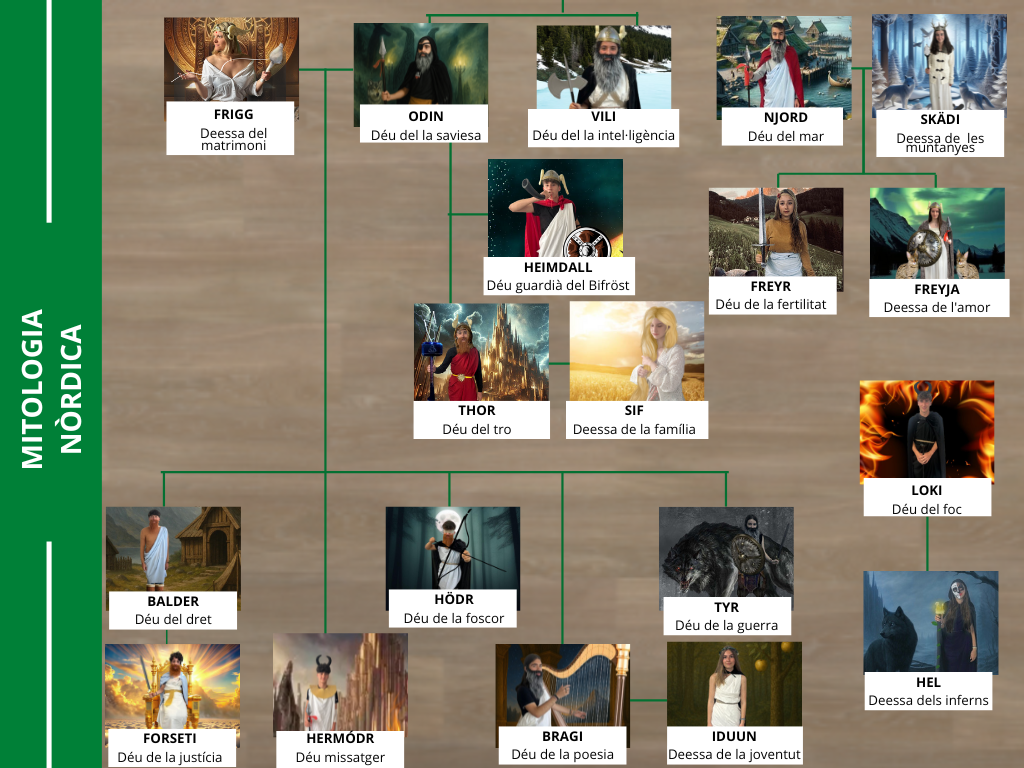 Concretament durant el tercer trimestre ens hem convertit en Déus nòrdics. Cada alumne ha escollit un déu/deessa per investigar-lo, conèixer-lo a fons i explicar-lo a la resta dels seus companys. Per això, hem utilitzat com a suport un Museu virtual on es representen tots els alumnes caracteritzats com les divinitats i els Memes que han confeccionat reflectint trets característics del seu déu/deessa.