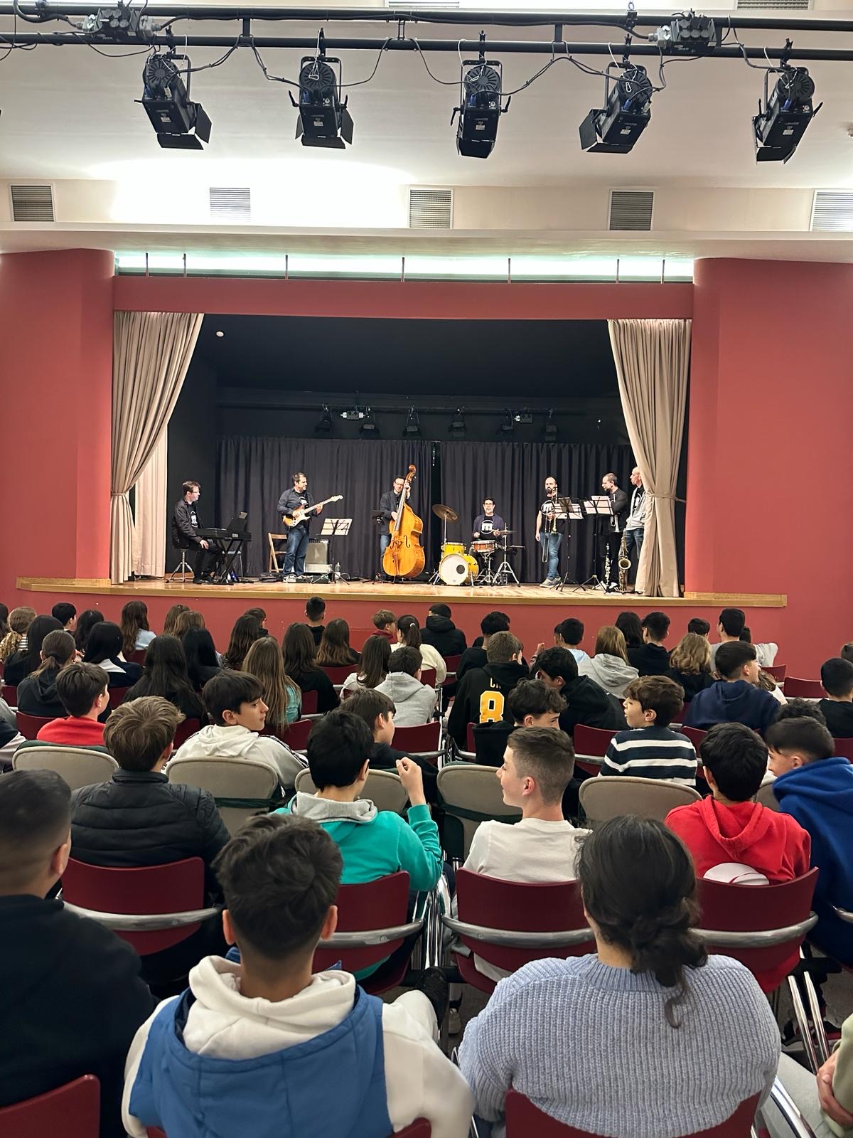 El passat dijous dia 11 d’abril, l’alumnat de 1r d’ESO va anar al Teatre Mundet a gaudir d’una audició de l’Escola de Música La Moderna de Calonge. El professorat de La Moderna va fer-los una explicació de cada instrument individualment i van fer un petit concert per veure’ls tots junts en acció.