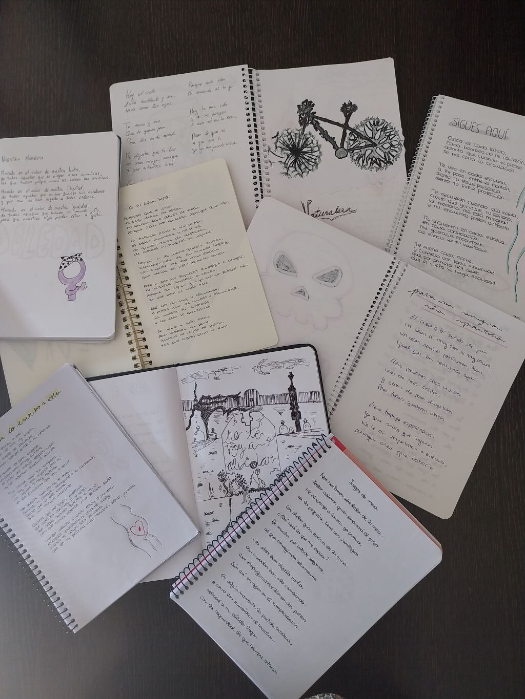 La matèria de creació literària és una de les noves optatives que s’ofereixen a 1r de batxillerat. Durant aquest curs han treballat els tres grans gèneres literaris, començant per la novel·la i acabant pel teatre. Durant el primer trimestre van treballar la novel·la i van haver d’escriure un relat breu d’uns deu capítols aproximadament, al segon trimestre van realitzar un poemari amb temes proposats per elles mateixes (amor, mort, família, natura, por, dolor, existència, feminisme, soledat, il·lusió i poder). Finalment, durant l’últim tram del curs han fet una adaptació al segle XXI de La Celestina. Totes les produccions han anat acompanyades d’il·lustracions fetes per elles mateixes.