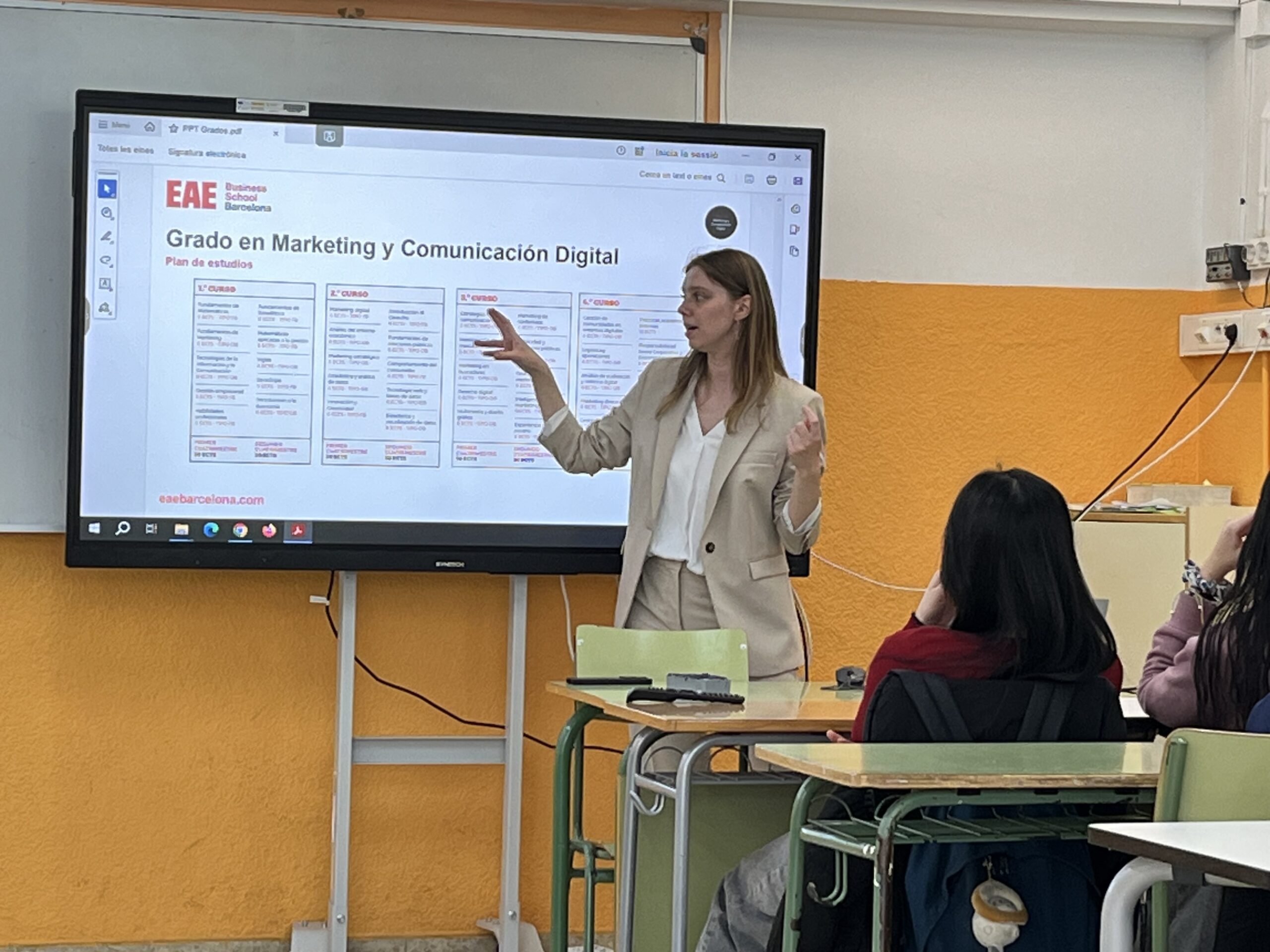 El 26 de març, els nostres alumnes de batxillerat que cursen l’especialitat de Ciències socials han participat en un Taller de màrqueting digital sobre la contractació de serveis On demand (Netflix, Uber, Spotify, etc.) organitzat pel professorat de EAE Business School Barcelona, escola de negocis partner de la Universitat de Lleida. En acabar, han explicat en que consisteixen els graus universitaris dedicats al món de l’empresa i el comerç internacional.