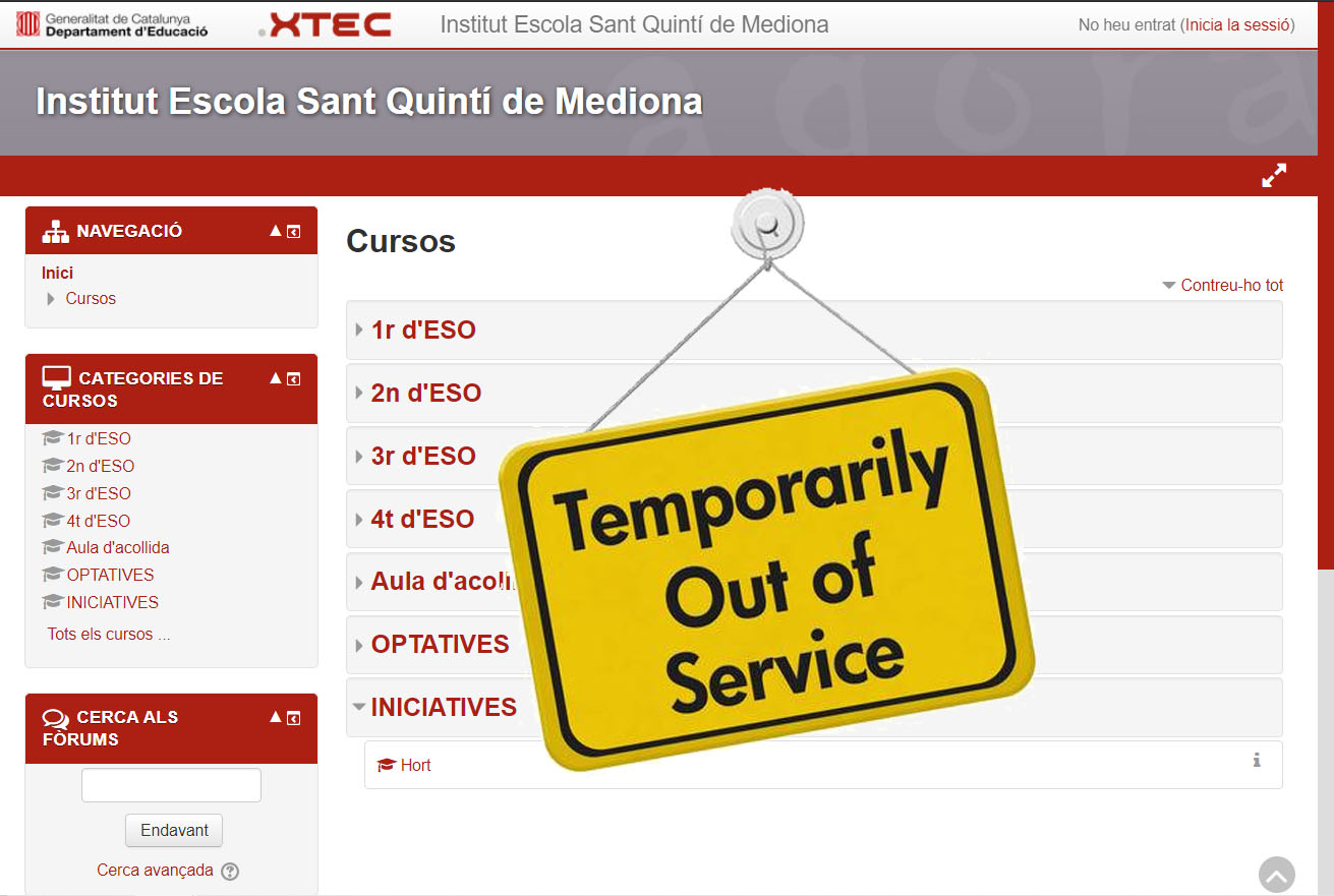 Des d’avui divendres 19 de juny a les 14 fins el dilluns al matí la MOODLE estarà inactiu perquè el servei tècnic està fent millores al servidor.
