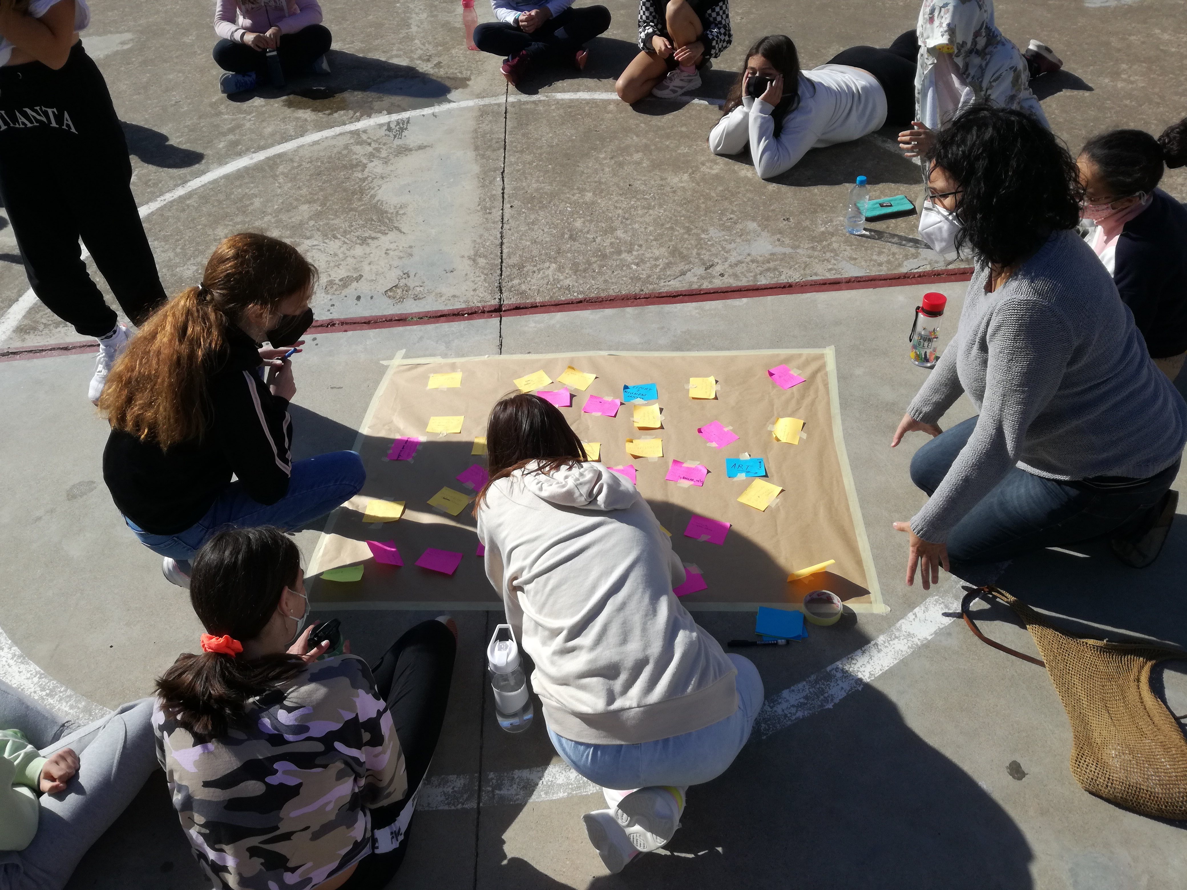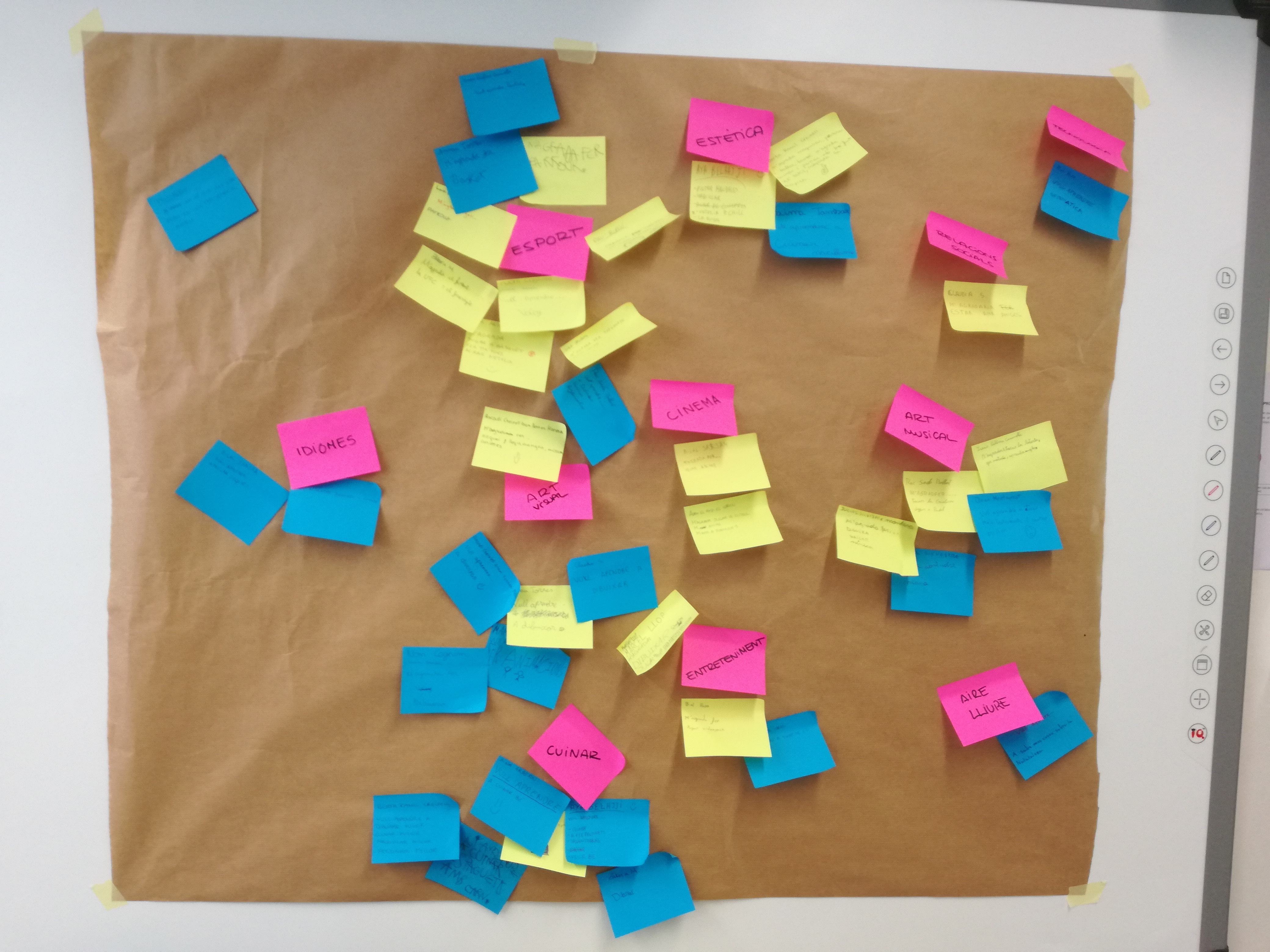 Primerament vam demanar al jovent que pensessin en quines coses els agrada fer i quines els agradaria aprendre. D’aquesta manera varem relacionar l’oferta i la demanda dels coneixements que poden aportar i rebre de la comunitat.