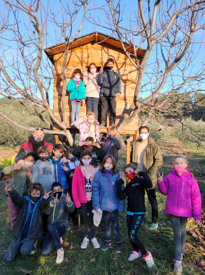 I mentre esperàvem el nostre torn, vam poder pujar i jugar una estona a la caseta de l’arbre, feta sobre les branques d’un noguer.