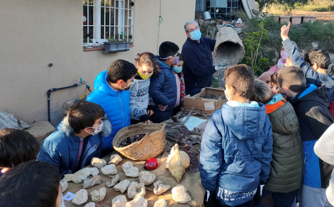La tarda del dimecres 9 de desembre, els nens i nenes de Cicle Mitjà vam fer una excursió fins la casilla de Cal Traginer. L’Aina va explicar a casa seva que a Medi estàvem estudiant el relleu del poble i el seu procés de formació i el seu avi, el senyor Antonio Pujadó, ens va convidar a anar fins la seva vinya on té una col·lecció de fòssils per poder-los veure. Va resultar que, a més de fòssils, ens va ensenyar eines de camp, nius de diferents mides i formes i fins i tot un rusc d’abelles antic.