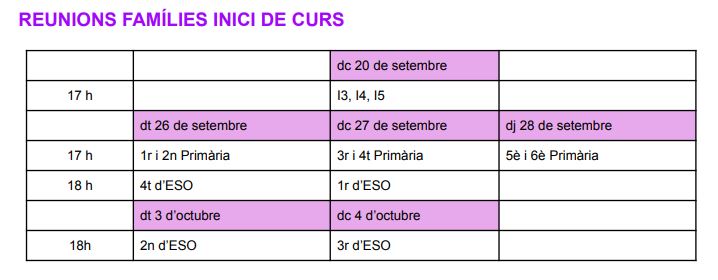 Reunions inici de curs