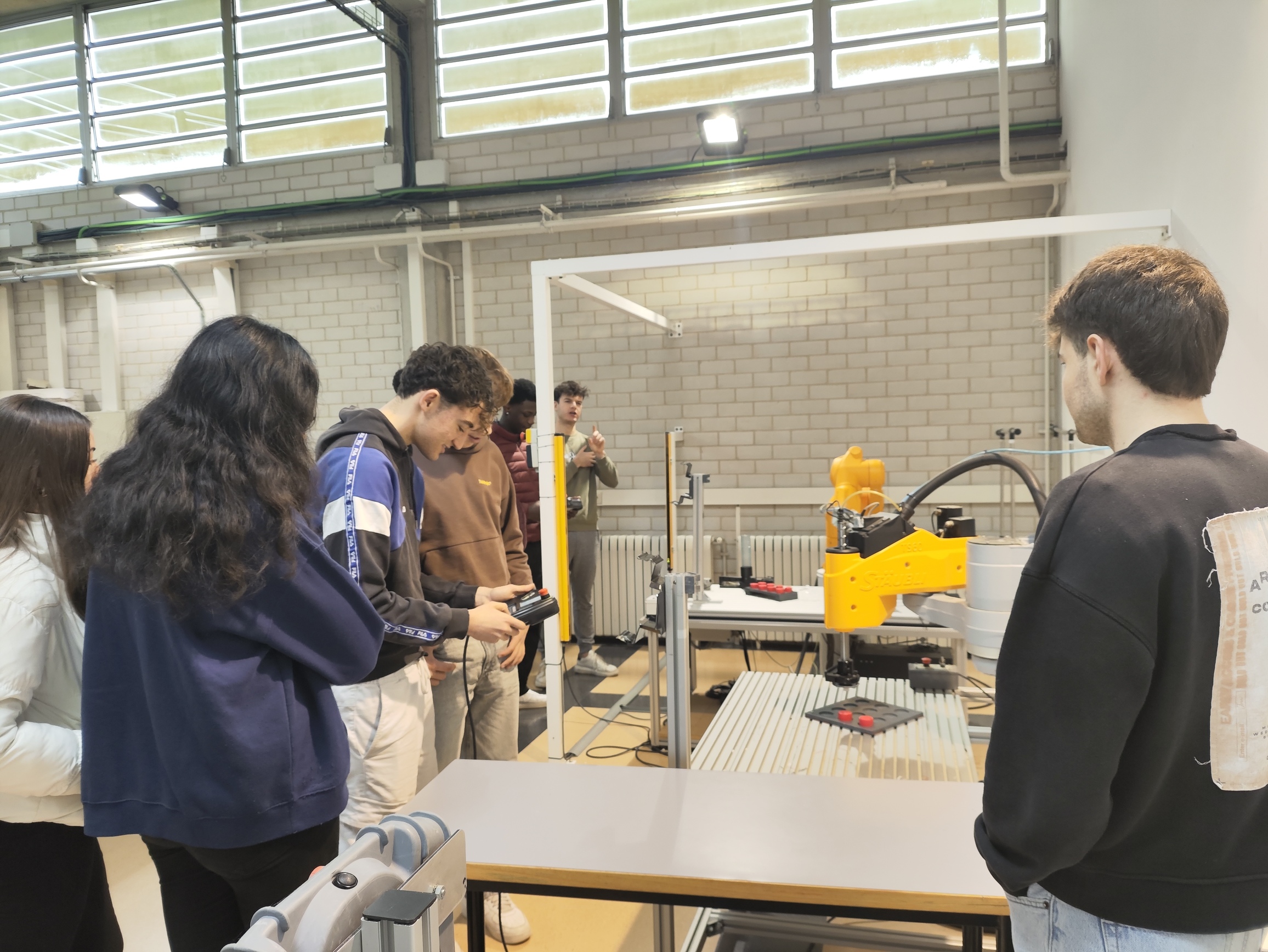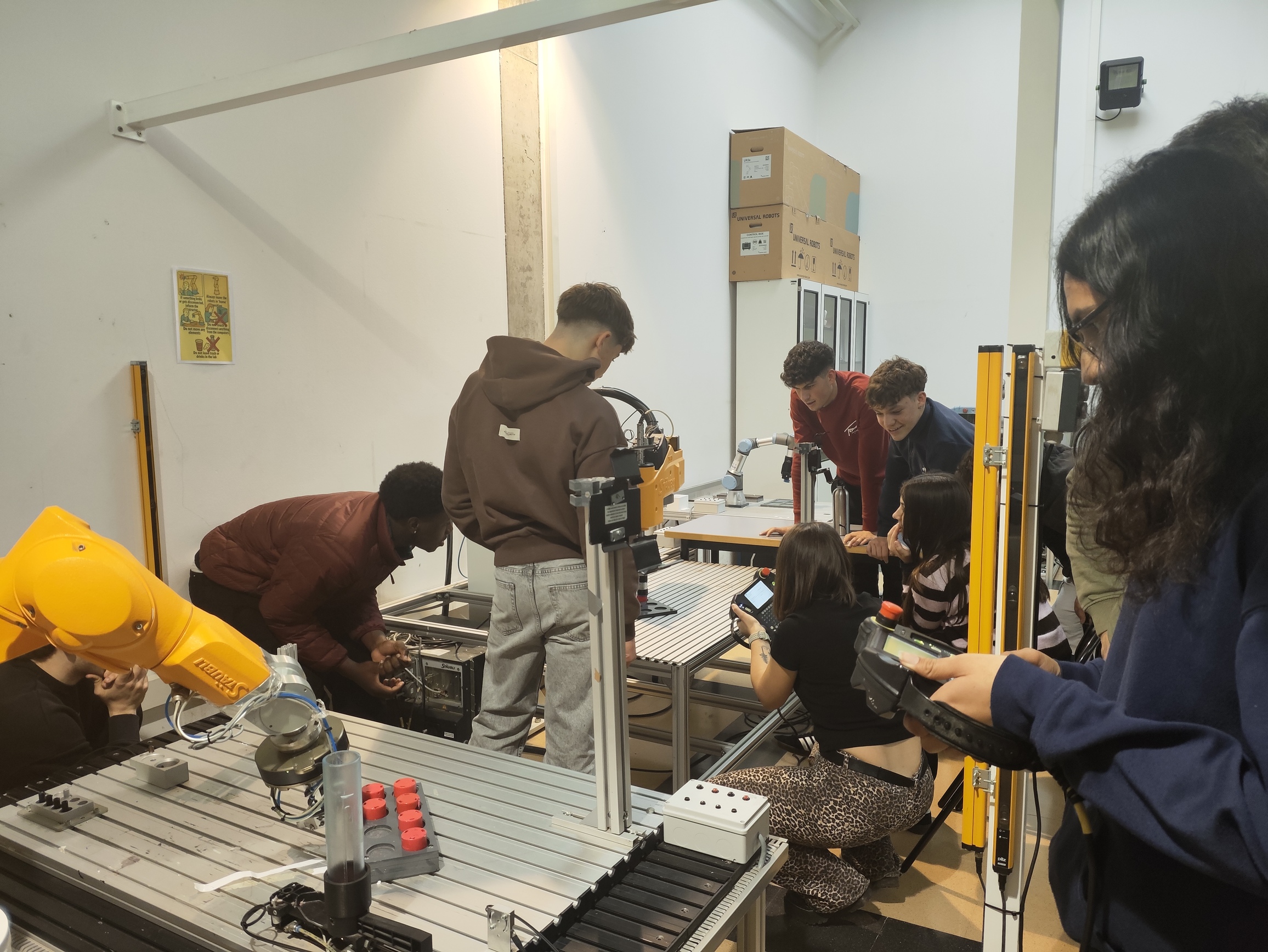 Dividits en 4 grups van poder fer un taller d’electricitat o de robòtica industrial. També, els van explicar els graus que ofereixen a la Politècnica i van poder veure les instal·lacions.