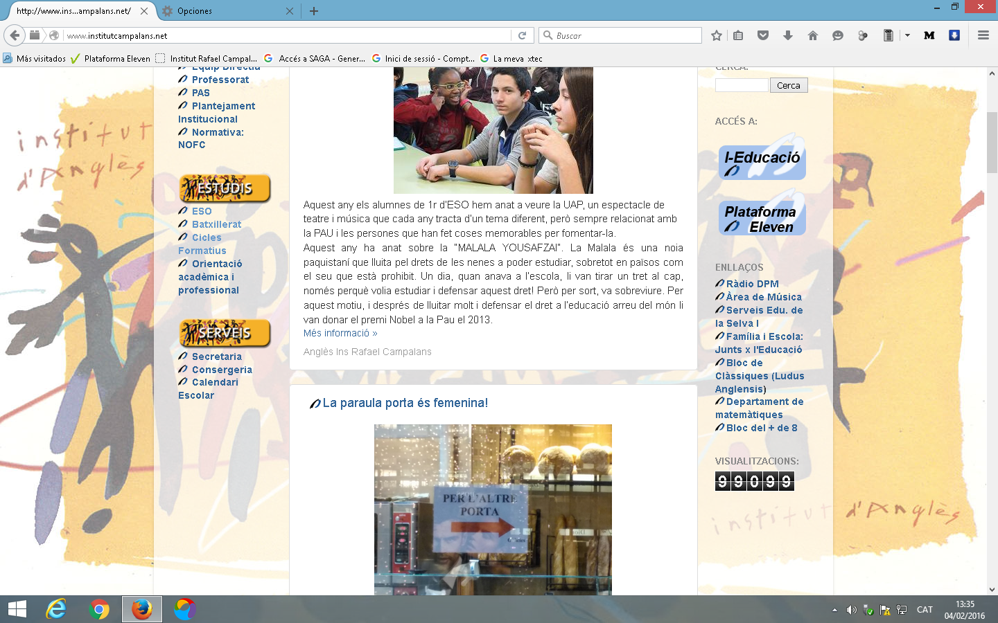 Total, 99099 són les visites que ha tingut el nostre web des que es va crear. Alguns celebrarien les 100.000 visites, però al centre hi ha bojos i apassionats per les matemàtiques que han decidit que el 99099 té unes connotacions cabalístiques, místiques, especials, galàctiques, simbòliques, màgiques,…