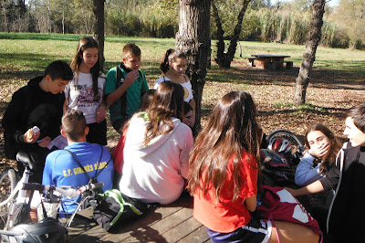 Moments de la sortida amb bicicleta que van fer els alumnes de 3r d’ESO al Pla dels Socs, a la zona de les Deveses de Salt, acompanyats pels professors d’educació física de l’institut, tutors i altres de reforç.
