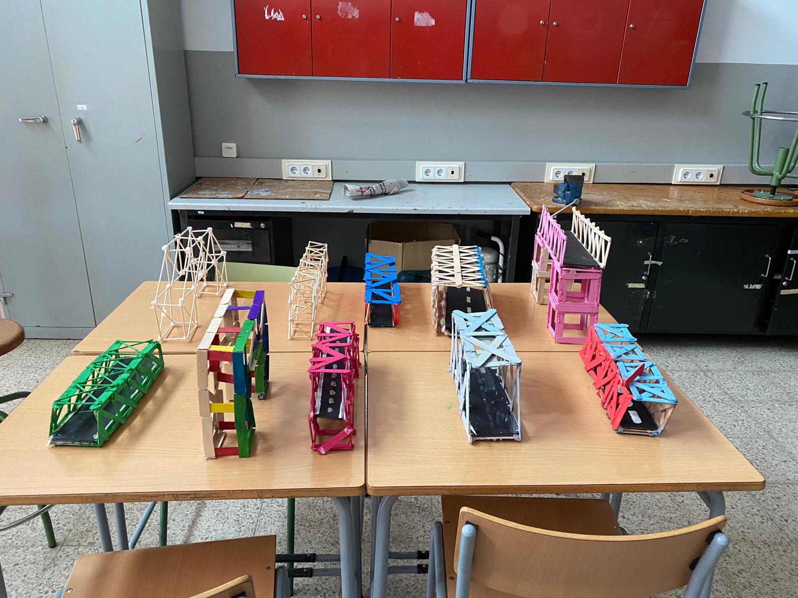 Els alumnes de tercer d’ESO han après a construir estructures resistents mitjançant la utilització de triangles. El triangle és la forma geomètrica més rígida que existeix. Alguns ponts han aguantat fins a 70 kg!