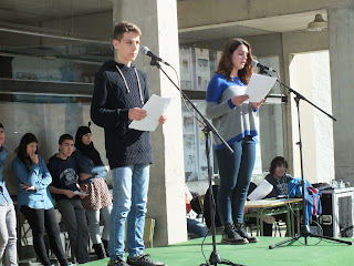 L’institut es va afegir a aquesta celebració, i cada curs va realitzar a l’hora de tutoria una activitat relacionada amb la temàtica proposada aquest any que tractava dels refugiats. Els alumnes de batxillerat van preparar uns textos que van llegir davant de tots els companys, en el pati de l’institut. Van fer una petita representació en què, vestits de negre, simbolitzaven una muralla ben visible, com a metàfora de les dificultats amb què es troben els refugiats que fugen de la guerra del seu país d’origen.