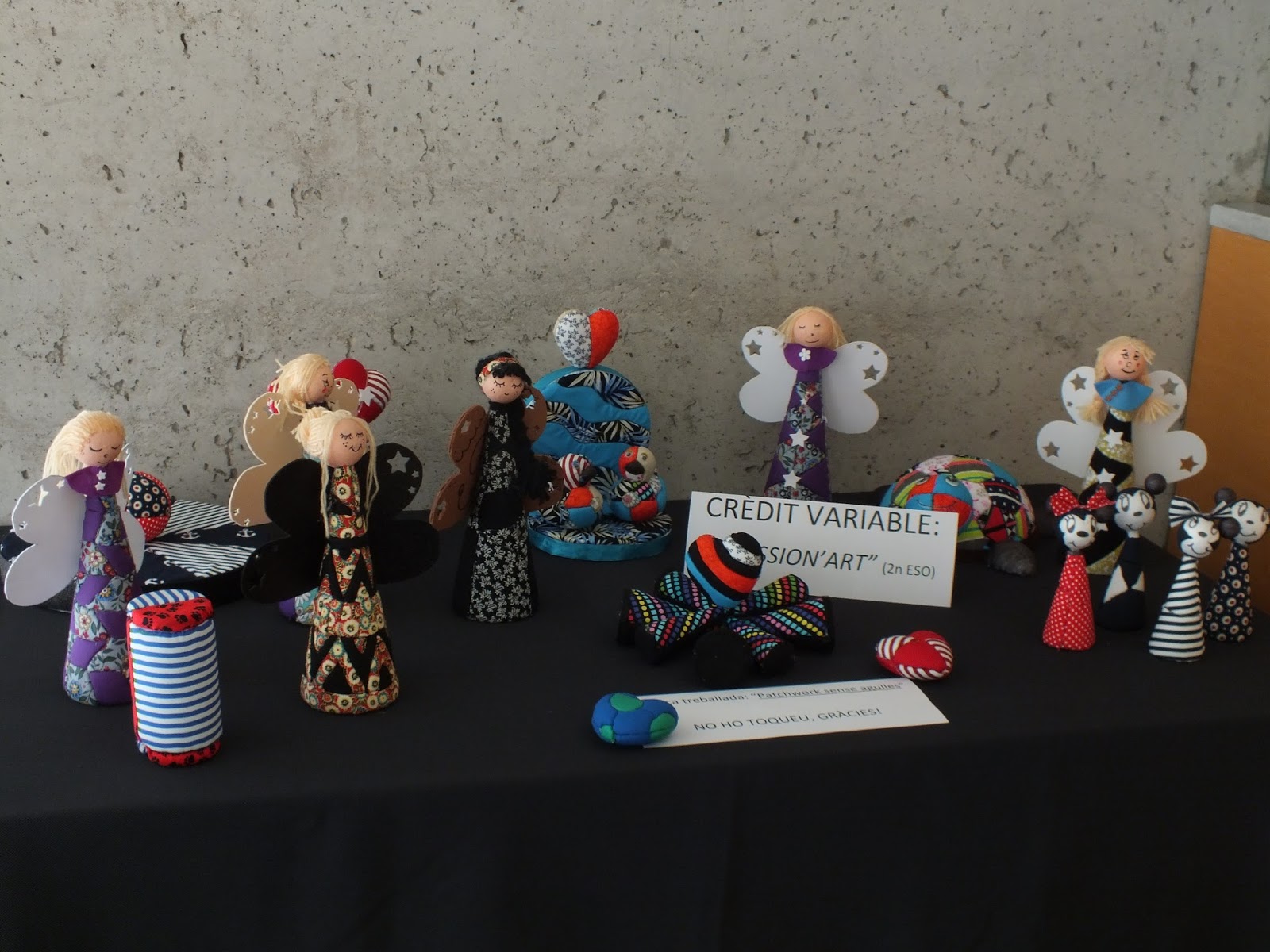 Els alumnes del crèdit variable “Apassion’ART” de 2n, aquest curs estan treballant moltes tècniques artístiques diferents i amb un ampli ventall de material. El 2n trimestre han conegut i practicat la tècnica del “Patchwork sense agulles”. Una tècnica que es treballa a partir de figures de porexpan i teles de cotó de diferents colors. Amb aquests materials, i d’altres, han creat uns àngels i uns treballs lliures ben bonics. La setmana passada, en vam exposar uns quants al “hall” del nostre centre per tal que tots i totes en podem gaudir.