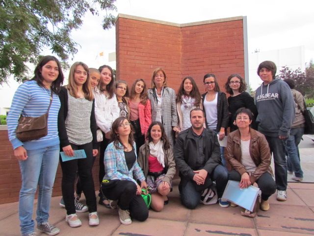 12 d’aquests alumnes amb alguns pares acompanyants i els professors M. Àngels López i Rafel Martí van anar a Barcelona a recollir el premi, que van recollir tres representants, de mans de la Consellera d’Ensenyament, Irene Rigau, i del rector de la Universitat Politècnica de Catalunya.