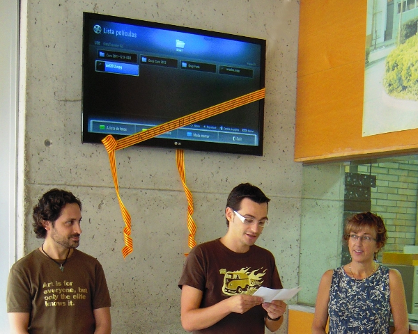 El dia 26 de setembre, en presència de la Directora –la Roser Sidera–, el Cap d’estudis –en Pere Parramon– i amb un parlament del professor de Llengües clàssiques –l’Albert Prat–, hem inaugurat l’ “Ariadna”, la nostra pantalla al rebedor de l’Institut. Es tracta d’una eina que ens permetrà projectar i difondre d’una manera visual i engrescadora les notícies i activitats del centre, que són moltes i ben variades. Per tal d’explicitar la nostra voluntat interdisciplinària i entenent tots els camps del coneixement complementaris entre ells, hem batejat aquesta eina tecnològica amb un nom manllevat del terreny humanístic: l’Ariadna és la famosa princesa de la mitologia grega que, mitjançant un fil, ajuda l’heroi Teseu a sortir del laberint del Minotaure. Així doncs, esperem que aquesta nova pantalla Ariadna ens ajudi a seguir el fil de les propostes i actuacions que mantenen l’Institut Rafael Campalans en constant ebullició!