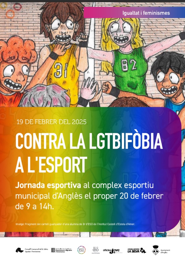 El passat dijous dia 20 de febrer al complex esportiu d’Anglès es va celebrar la 2a jornada contra l’LGTBIfòbia a l’esport, una jornada per reivindicar que estem en contra de qualsevol tipus de discriminació basada en l’orientació sexual, identitat o d’expressió de gènere dins de l’àmbit esportiu. Hi van participar l’alumnat de 3r ESO de l’Institut Castell d’Estela d’Amer, i Escola Fedac i Institut Rafael Campalans d’Anglès.