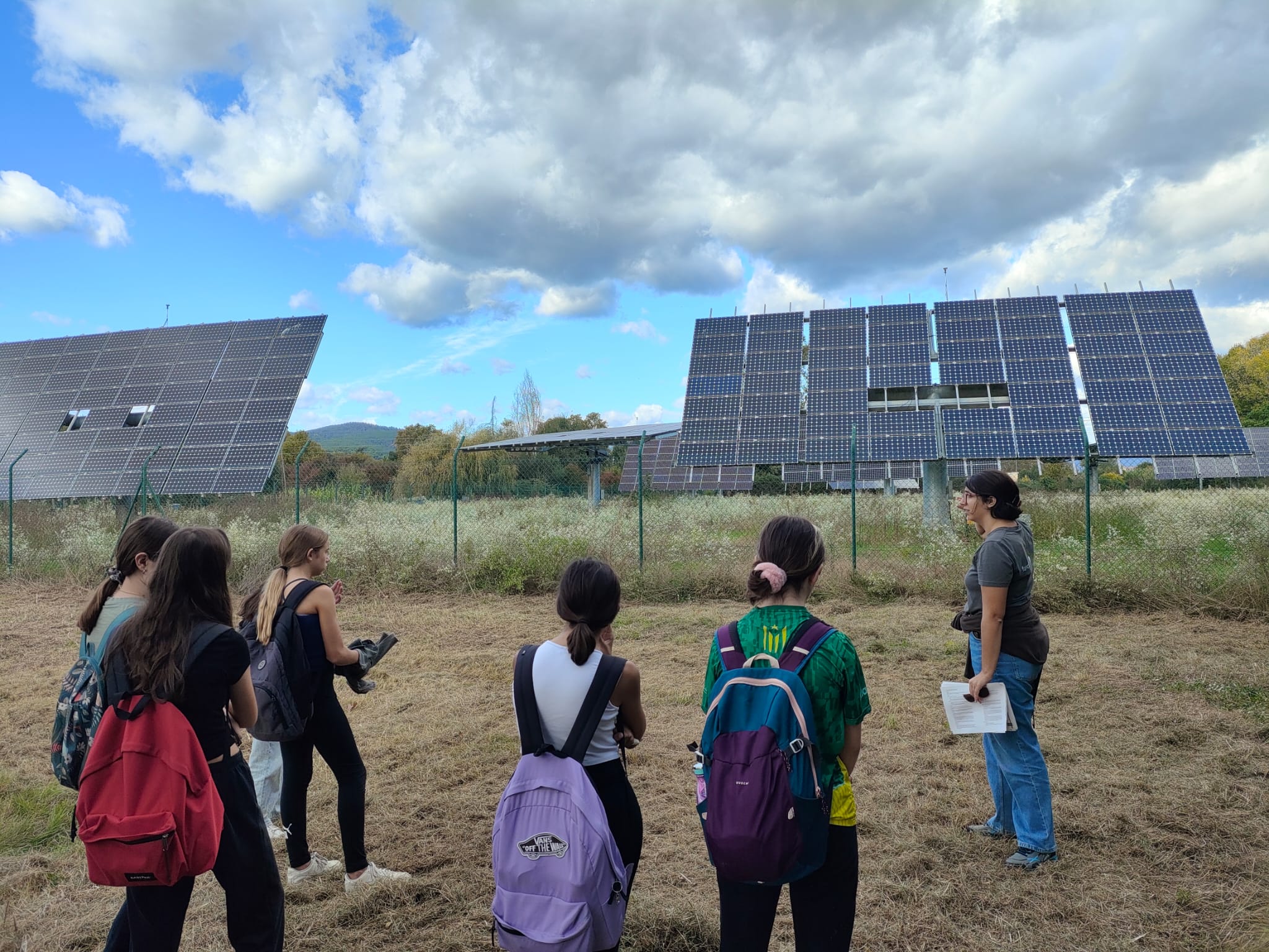 Després d’una introducció teòrica, els alumnes van fer una ruta per la finca de Can Moragues, on van poder observar diferents tipus de plaques solars i entendre com es transforma l’energia del sol en electricitat.