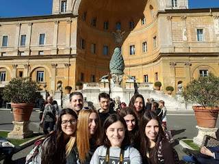El bon temps va acompanyar les nostres alumnes viatgeres de 1r de batxillerat que van anar a Roma el passat dijous, divendres i dissabte. La impressió personal de les protagonistes és molt positiva, a hores d’ara es troben encara en estat catatònic, perquè van viure en primera persona una experiència singular i enriquidora de les que val la pena poder experimentar en aquest moment de la seva vida.