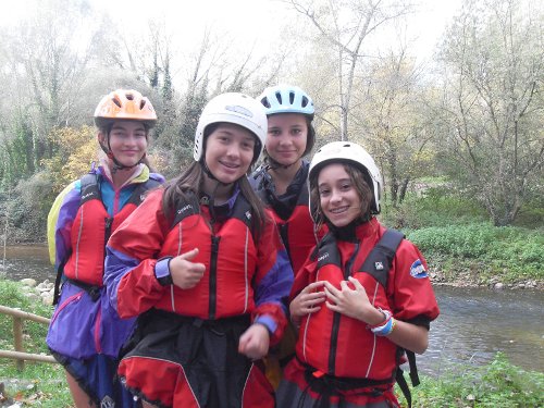 Els jocs a la piscina van ser molt divertits, fèiem un equip amb nenes de la meva classe i amb el monitor. Però els dos divendres tranquils a la piscina s’acabaven, només quedaven dos dies i eren tots dos al riu. El primer dia de riu va ser molt divertit, vam passar tres cascades i la Mar, cada cop que baixava la cascada, acabava fotent-li cop de pala a en Lluís, pobre professor! Quasi acaba estès a la vora del riu, no sé com encara ens aguanta. Però nosaltres també vam sofrir molt! L’aigua estava plena de fang i quan hi vaig posar el peu se’m va enfonsar, el vaig treure empastifat d’un color merdós. Però aquestes coses no s’han de tenir en compte… Va ser genial! I amb en Lluís encara més. Al final ens vam haver de canviar al maleter del cotxe d’en Lluís i passaven cotxes per allà i totes ens tapàvem com podíem… L’any que ve s’ha de repetir! (Júlia Muntada Vinyolas, novembre 2012)