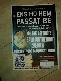 Demà divendres, dia 6 de novembre, en Miquel Borrell Sabater, professor d'història de l'institut Rafael Campalans, actualment jubilat, presenta a la sala Fontbernat d'Anglès un llibre escrit per ell que duu el títol Ens ho hem passat bé. El subtítol ja conté la línia argumental i temàtica: Memòries d'un professor d'història fill, nét i nebot de botigueres.