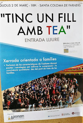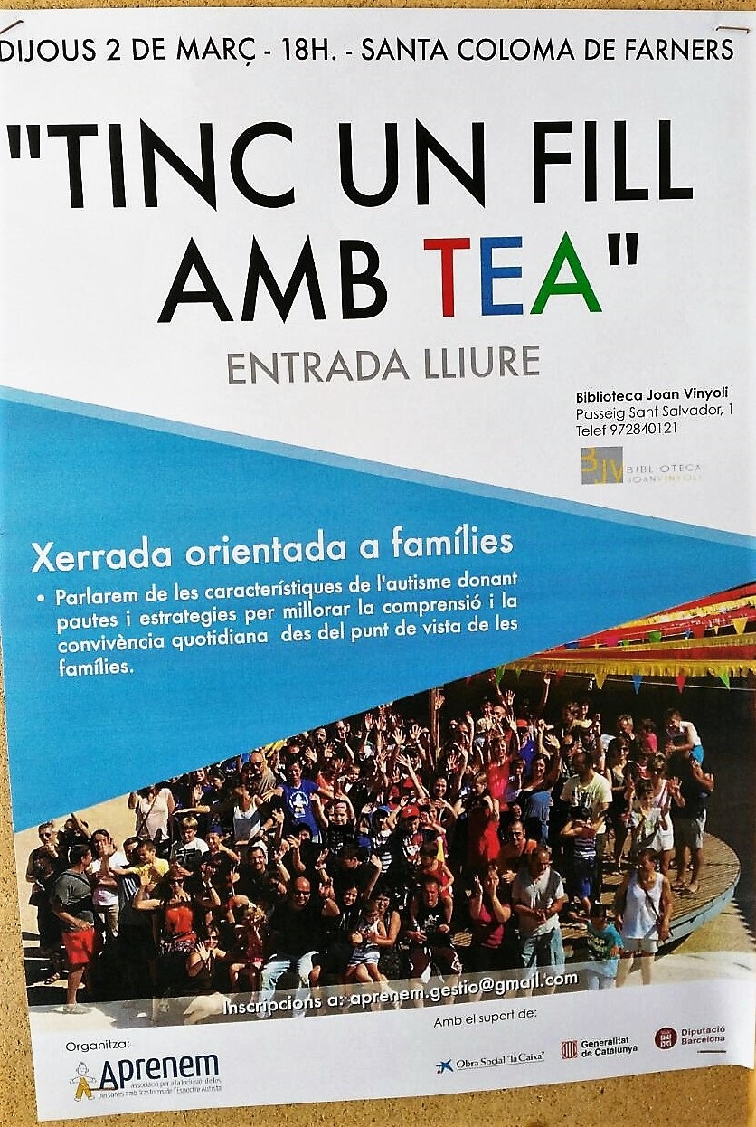 Avui dijous 2 de març a la biblioteca Joan Vinyoli de Santa Coloma de Farners tindrà lloc una xerrada orientada a les famílies que tractarà del tema de l’autisme, i estarà encarada a donar pautes i maneres de millorar la comprensió i la convivència quotidiana entre els nois i noies que pateixen aquest transtorn i les seves famílies i l’entorn.