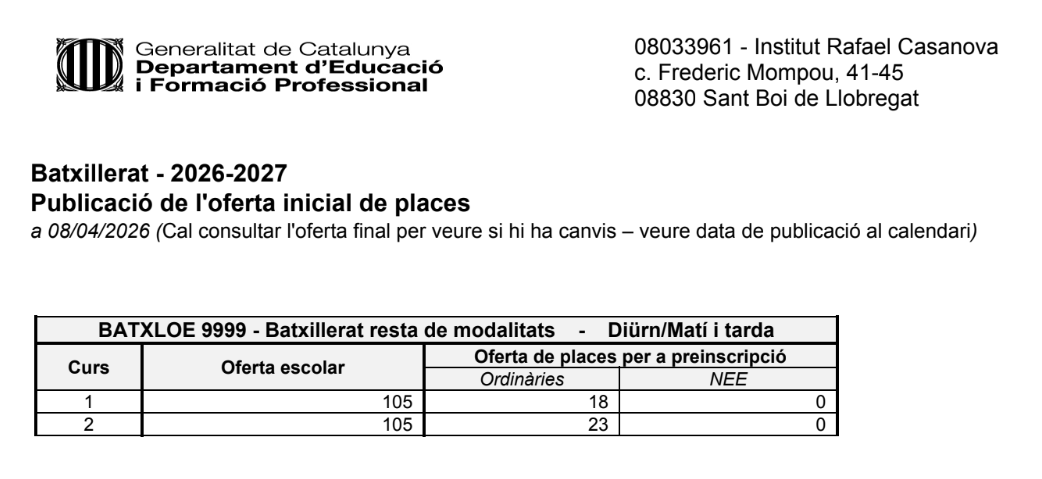 Informació Preinscripció i matrícula Batxillerat curs 2026-2027: