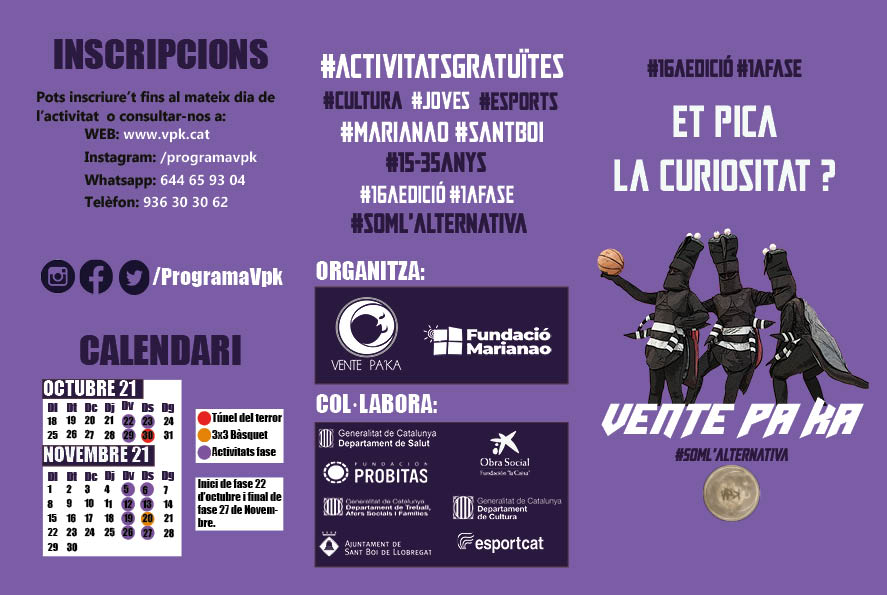 07/10/21El proper dimecres 13 d’octubre s’iniciarà la nova edició del nostre projecte “Patis saludables“, coordinat per el Departament d’Educació Física del nostre institut i que compta amb la inestimable col·laboració de l’alumnat de 1r de Batxillerat. Mireu aquí les activitats que tenim organitzades per aquest curs: