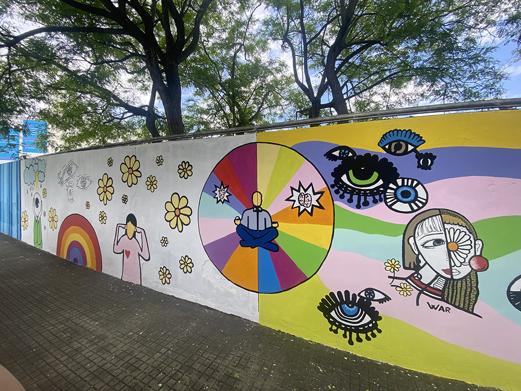 Vam realitzar cada un de nosaltres diferents propostes que posteriorment vam passar a direcció. El que van escollir, és el que hem pintat, tot i que fent-hi unes petites modificacions. La idea és de l’alumna Arina Chevaturova i tracta de la salut mental en l’adolescència. Parla una mica de moltes coses que passen als adolescents pel cap i que els porten a reflexionar i créixer.