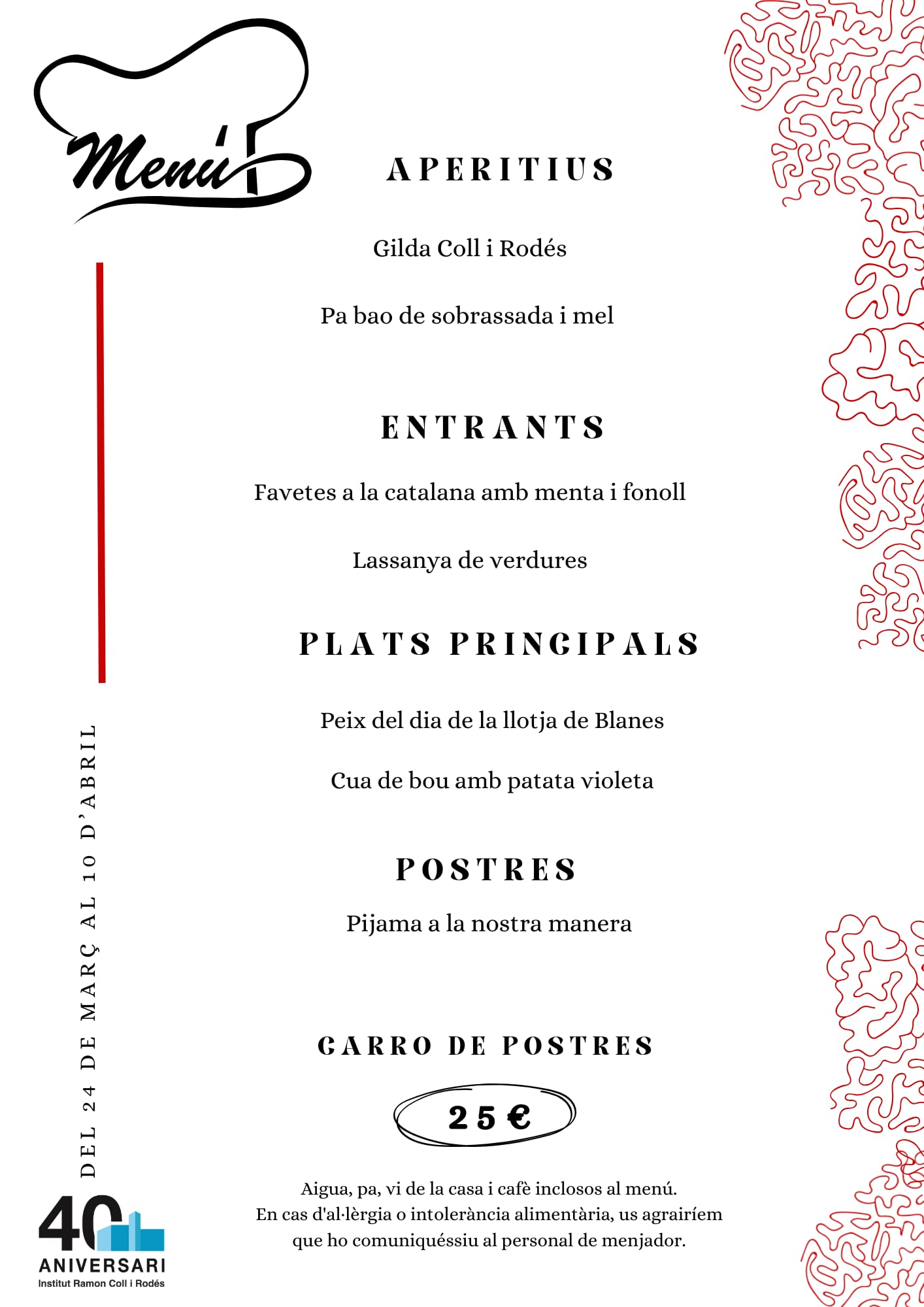 Menú Restaurant Pedagògic (del 24 de març al 10 d’abril) 🍽️