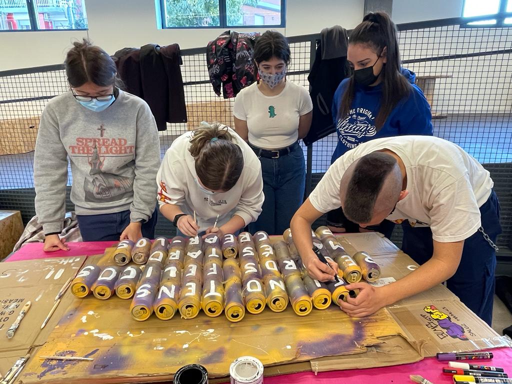 Aquest darrer dimarts i dimecres l’alumnat de 4 ESO va participar en el 25NStreetArtAcció de la mà de la CIBA i els artistes Me Lata. Es tracta d’una campanya de sensibilització i prevenció de les violències masclistes a través de l’art urbà. El taller va estar tot un èxit!