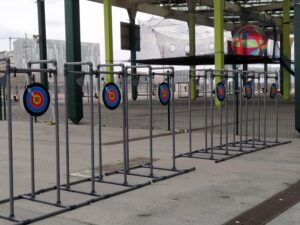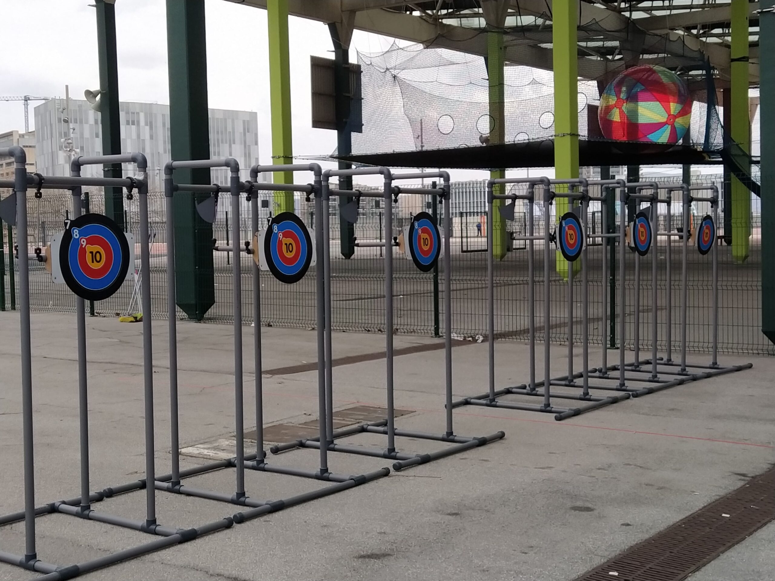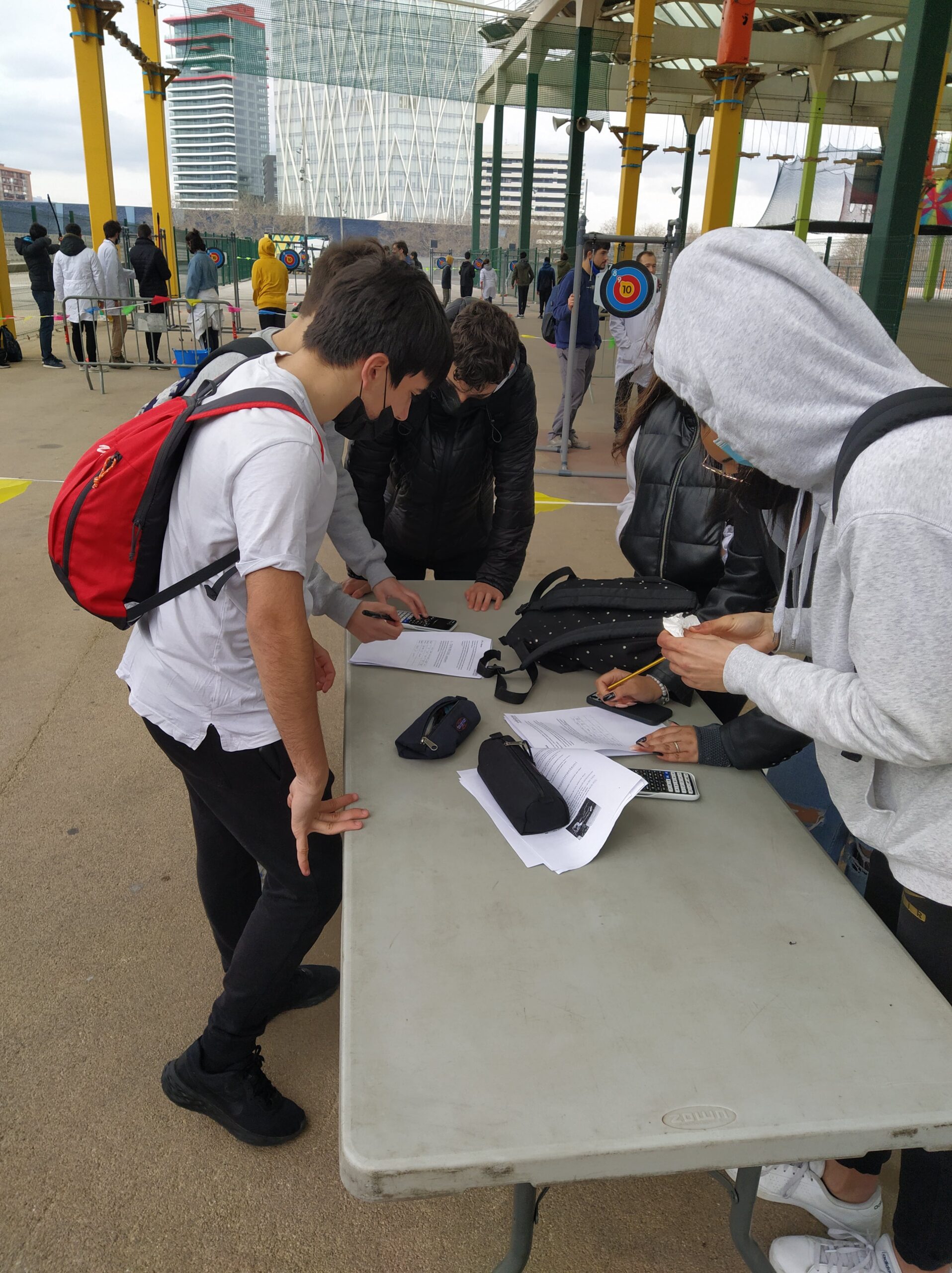 -la primera relacionada amb la física, llençant una fletxa a una diana i mesurant l’angle de desplaçament, per després calcular la velocitat de la fletxa aplicant el principi de conservació de la quantitat de moviment, estudiat a Física.