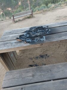 Des de fa unes setmanes aquest risc s’ha incrementat per l’acció de grups que fan fogueres directa e intencionadament ( s’ha trobat restes de material inflamable al costat) al nostre espai natural. Aquestes accions comporten un risc molt elevat d’incendi, doncs el foc té vida pròpia i s’escampa al mínim descuit, fogueres al bosc, al poblat Iber o, fins i tot, al damunt de les taules del bosquet de les escoles i directament a sota dels pins, estan posant en risc el nostre pulmó verd, els habitatges més propers i l’aire que es respira a tota la ciutat. Es triga dècades en reconstruir un bosc que es pot trigar minuts a destruir.