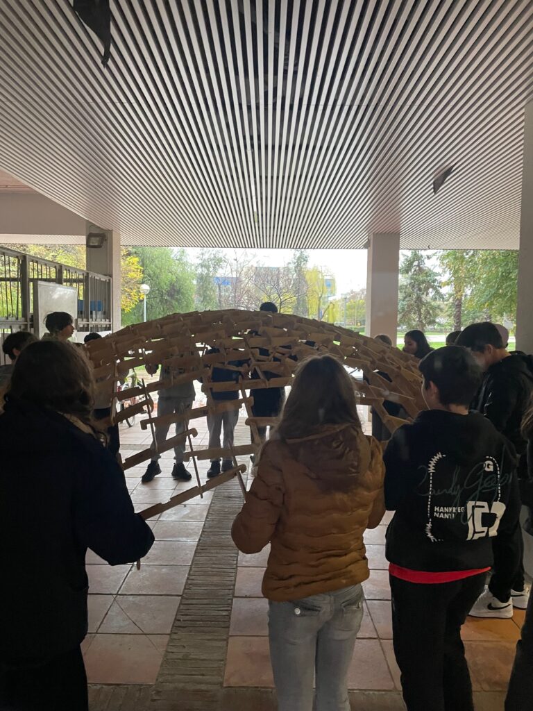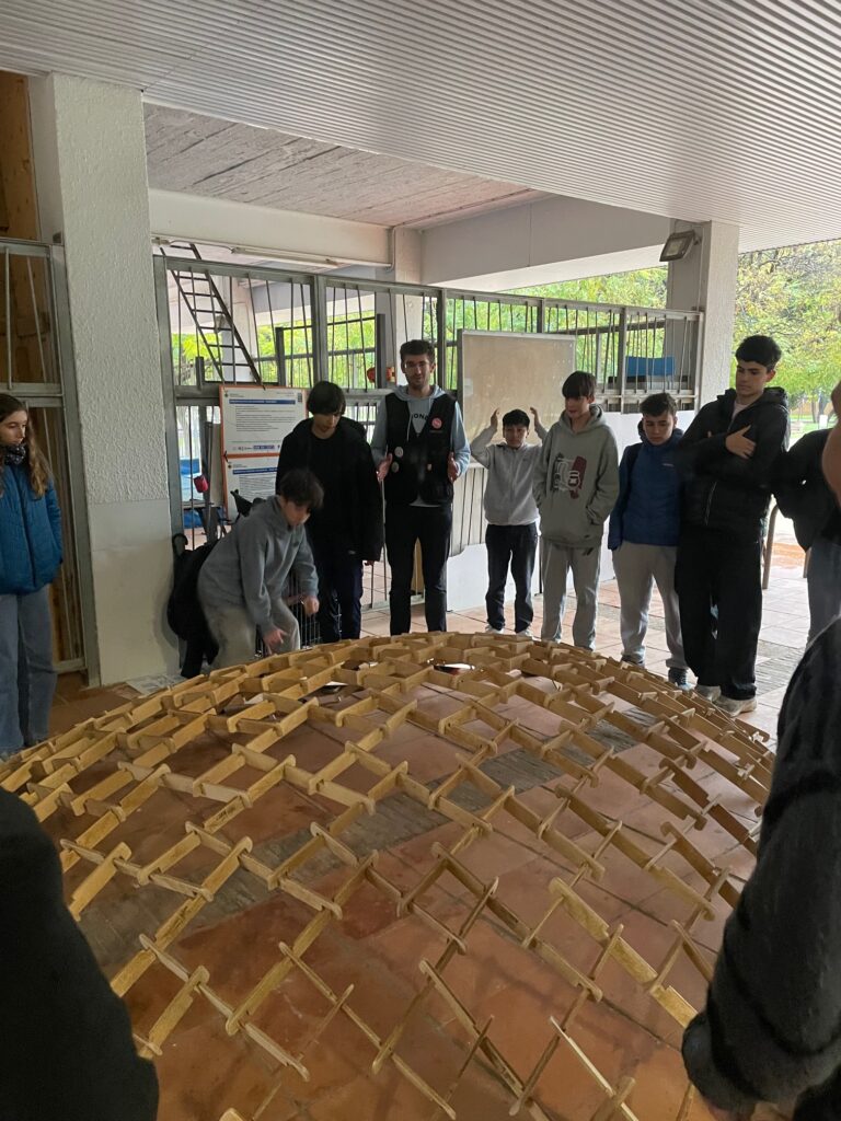 Un dels moments més destacats de la jornada va ser el taller de les cúpules de Leonardo. En aquesta activitat, l’alumnat va construir de manera cooperativa estructures en forma de cúpula utilitzant bastons que s’aguanten mútuament sense cap tipus de cola ni element de fixació. Aquest tipus d’estructures, inspirades en dibuixos de Leonardo da Vinci, es basen en el principi que cada peça es sosté gràcies al suport de les altres.