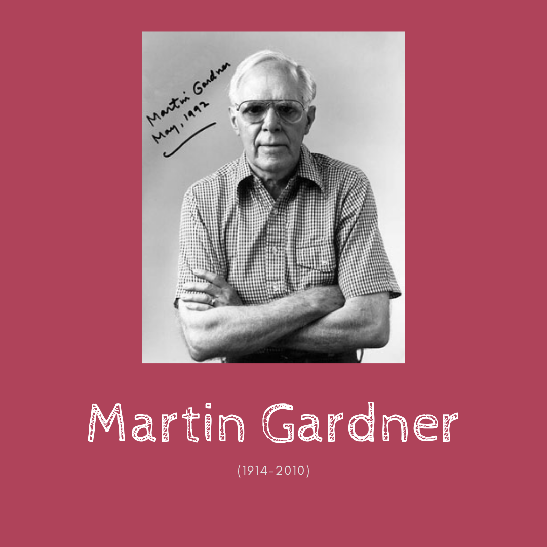 Martin Gardner va ser un conegut escriptor i matemàtic pioner en la divulgació de les matemàtiques que va publicar molts llibres amb enigmes, jocs, etc.