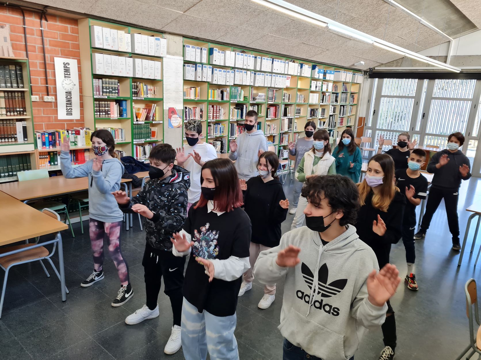 Aquest dijous 16 de desembre els grups de 2n ESO han participat en una activitat diferent, divertida i engrescadora organitzada des del departament de Llengües Estrangeres: una sessió de teatre musical en anglès. Conjuntament a les classes de música i anglès s’ha preparat amb anterioritat l’activitat de manera que els alumnes de 2n han passat una bona estona practicant l’anglès mentre cantaven i ballaven.