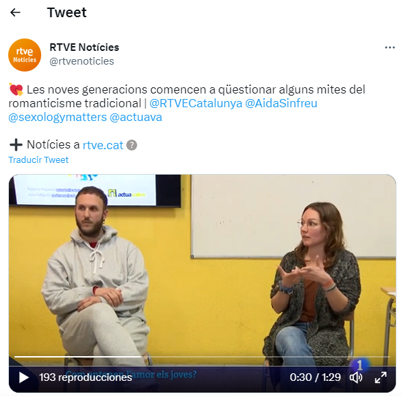 El divendres dia 9 ens ha visitat rtve Catalunya durant la classe de Diversex que es feia amb l’alumnat de 1r d’Integració social (Educació Sexual i prevenció de violències), coordinada per l’entitat sabadellenca Actuavallès.