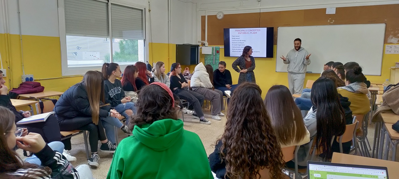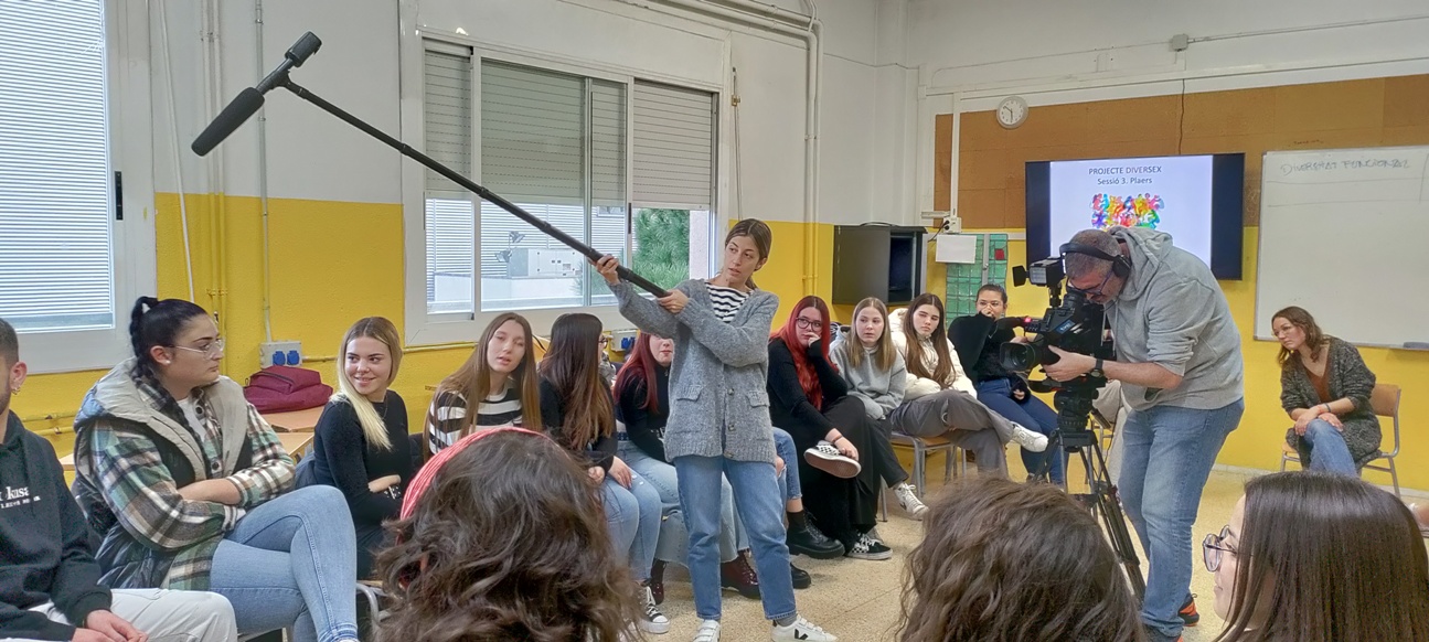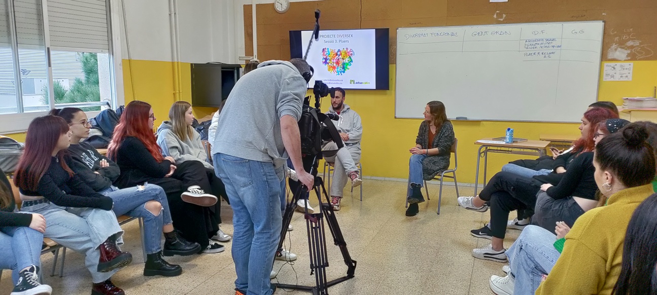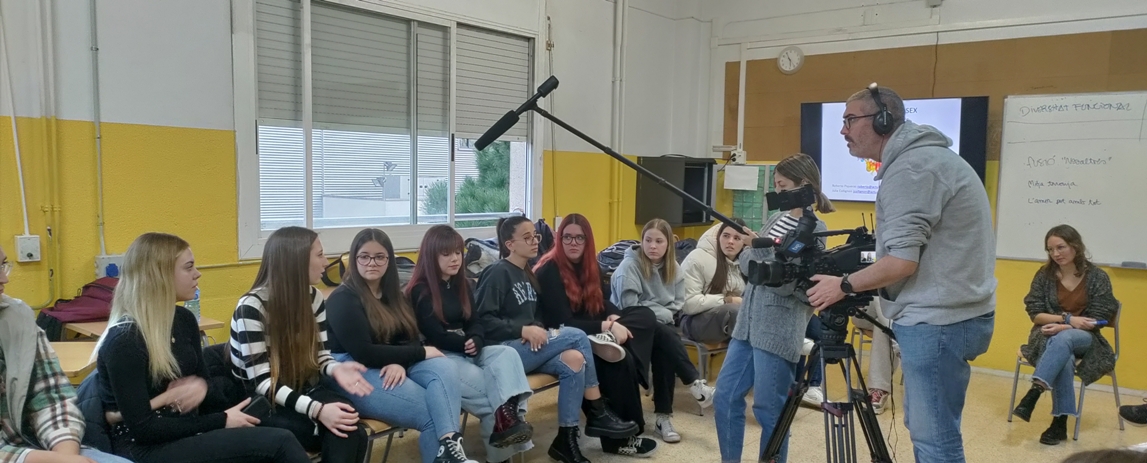 El divendres dia 9 ens ha visitat rtve Catalunya durant la classe de Diversex que es feia amb l’alumnat de 1r d’Integració social (Educació Sexual i prevenció de violències), coordinada per l’entitat sabadellenca Actuavallès.
