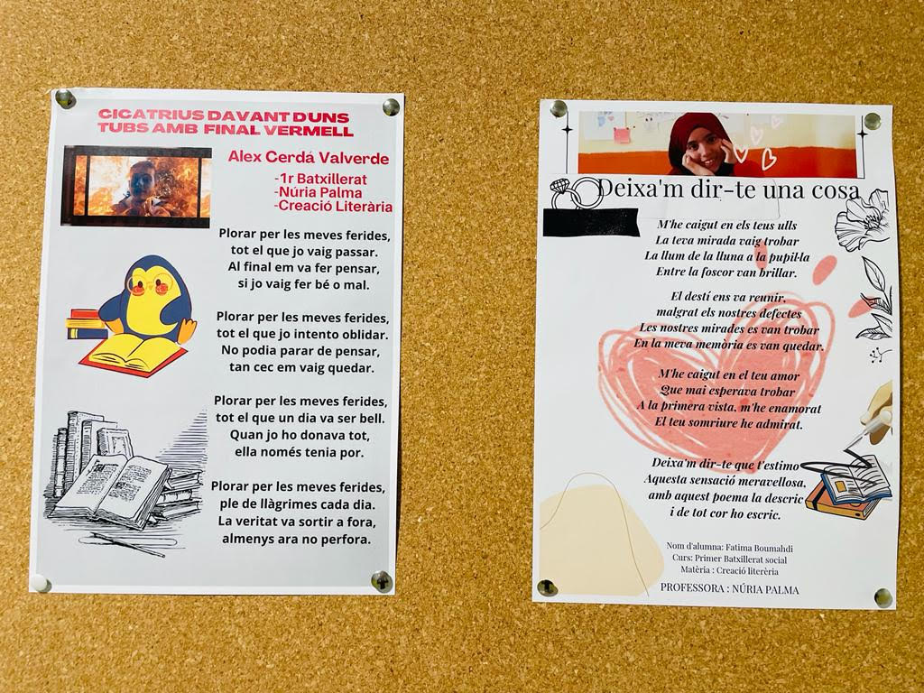 L’alumnat de 1r de Batxillerat, a la matèria de creació literària, ha gravat en vídeo els poemes que han creat a través dels quals han pogut expressar els seus sentiments i emocions, centrats en l’alegria, la tristesa, la soledat, l’autoestima o l’amistat, entre d’altres. Primer, han vist els tipus de rimes i han fet pràctiques improvisades a classe. Tot seguit, han redactat el seu poema per després poder-lo gravar, tenint en compte l’entonació i el llenguatge no verbal. Finalment, s’han coavaluat per parelles. Una experiència molt commovedora.