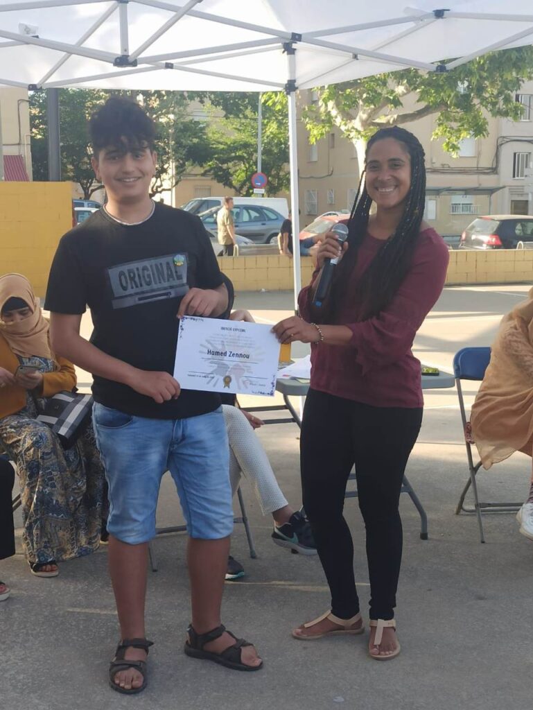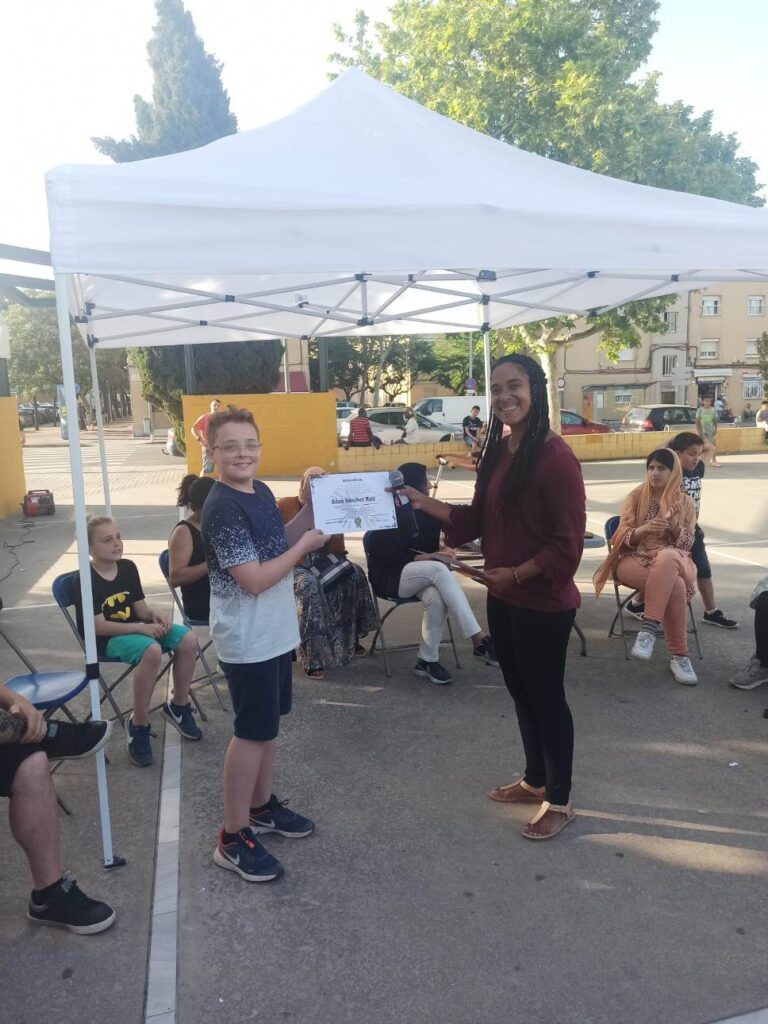 Gràcies a la Xarxa Antirumors i a la col·laboració de l’alumnat d’Integració Social de l’institut vam poder tombar el mur dels estereotips, mentre els infants i no tant infants, van poder gaudir de la creació de xapes, polseres i altres manualitats de la mà de la Fundació Pere Closa, per la promoció de la Cultura Gitana. La Plataforma per la Llengua a través de l’artista Nel.lo C, va fer rimar als infants per un barri divers i cohesionat i les dones que participen de les Activitats Formatives per a Famílies Migrades que promociona Casa Àsia ens van mostrar el que fan i com els hi aporta. A més a més, vam poder donar la menció especial a dos dels artistes del concurs de cartells de la Jornada Intercultural del Ribot i Serra, esperem poder donar la resta de premis i diplomes en breu.