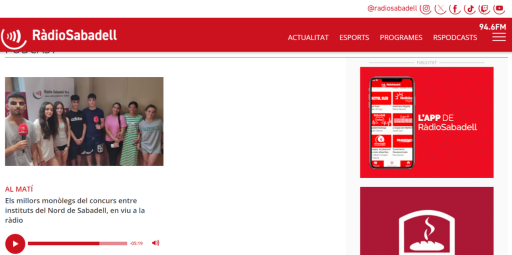Ràdio Sabadell va convidar els millors monologistes del concurs entre instituts del Nord de Sabadell. En viu a la ràdio podeu escolatr el podcasts amb els millor monòlegs.
