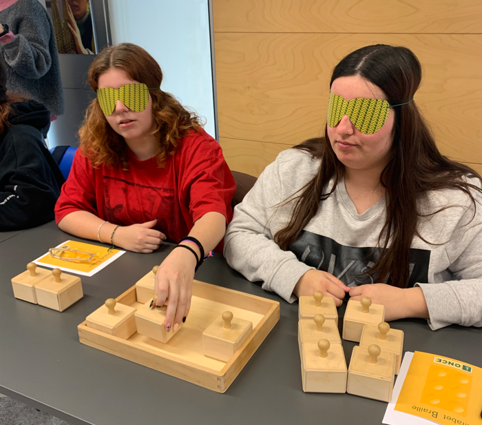 Han visitat les instal·lacions i han pogut posar-se en la pell d’una persona amb dèficit funcional visual. A més, han après les tècniques per fer de guies d’una persona amb ceguesa i els han introduït en el món de l’escriptura en braille. Ha sigut una experiència molt enriquidora!