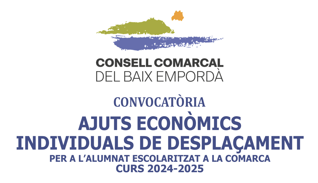 El Consell Comarcal del Baix Empordà informa que a partir del proper 17 de febrer 2025, a les 9h, fins al 7 de març 2025 a les 14h, s’obre la convocatòria d’ajuts econòmics individuals de desplaçament curs 2024-2025.