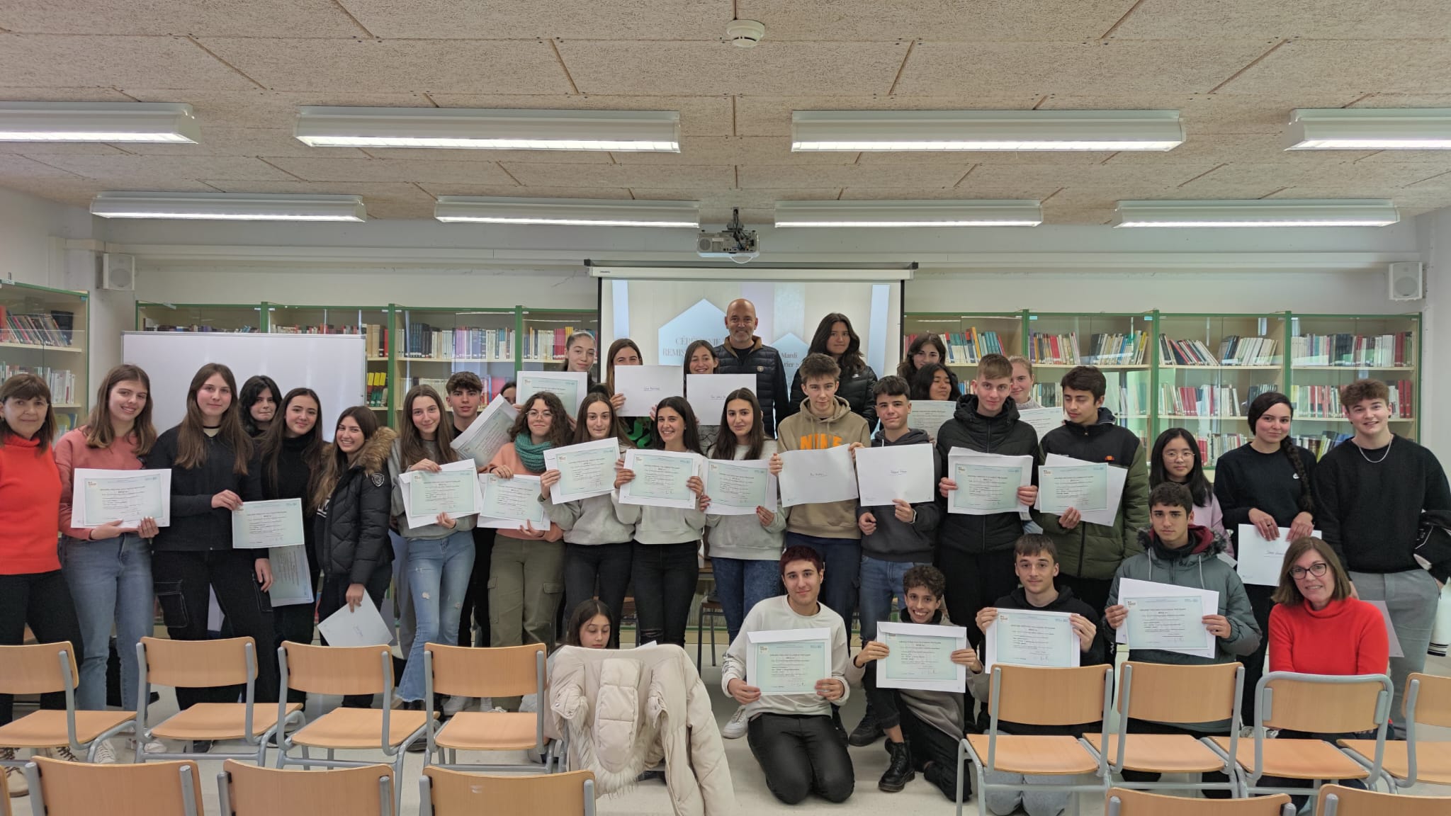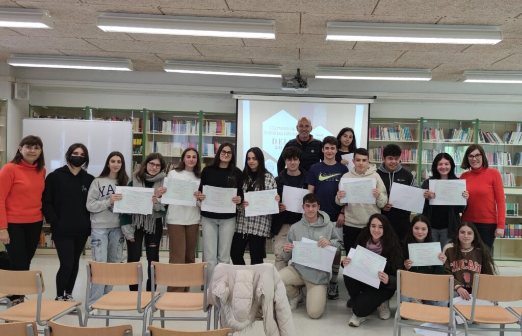 Dimarts 21 de febrer 2023, l’alumnat que el 2022 va obtenir el seu certificat de Llengua francesa ha pogut recollir la seva titulació a la Cérémonie de remise des Diplômes DELF que s’ha dut a terme a la Biblioteca del nostre centre.