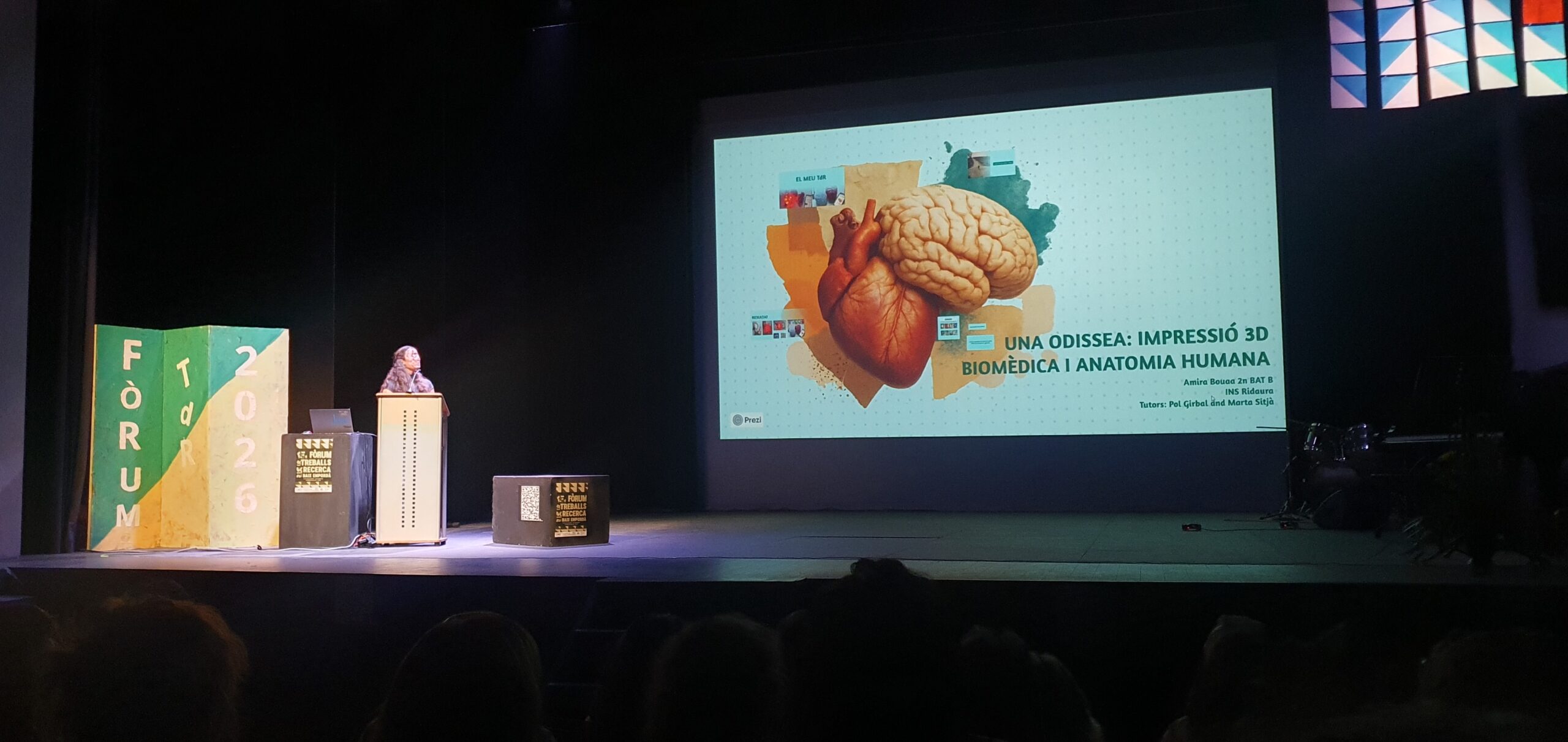 L’alumna representant de l’Ins Ridaura va ser l’Amira Bouaa, que exposà el seu treball sobre la impressió en 3D a l’àmbit de la biomedicina.
