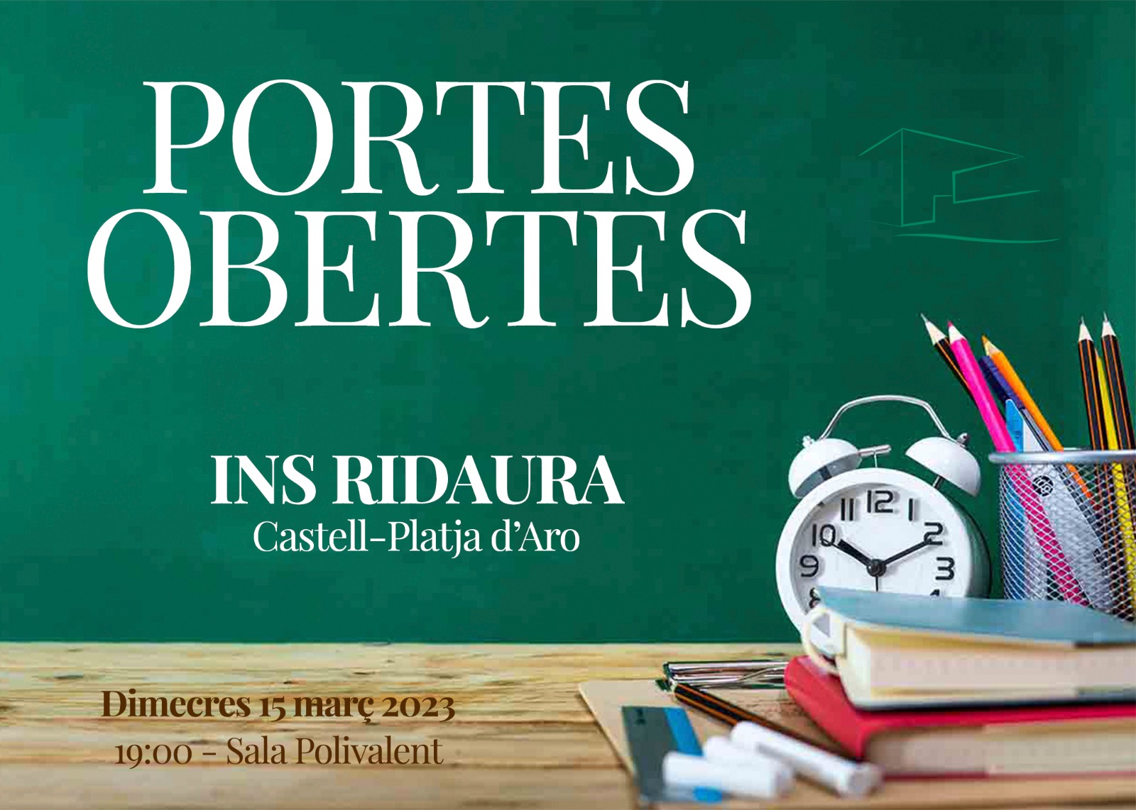 El dimecres 15 de març 2023 tindrà lloc la Jornada de Portes Obertes de l’Institut Ridaura, a les 19:00h, a la Sala Polivalent.