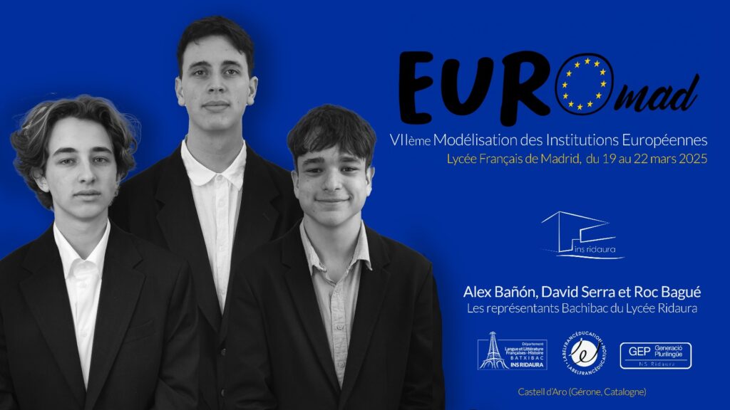 Del 19 al 22 de març del 2025, el Lycée Français de Madrid acollirà la 7a edició d’EUROmad+, una modelització de les institucions europees que reuneix estudiants de diversos centres d’Europa i del món. Durant tres dies, els participants tindran l’oportunitat de debatre, principalment en francès però també en anglès, i prendre decisions sobre temàtiques actuals variades.