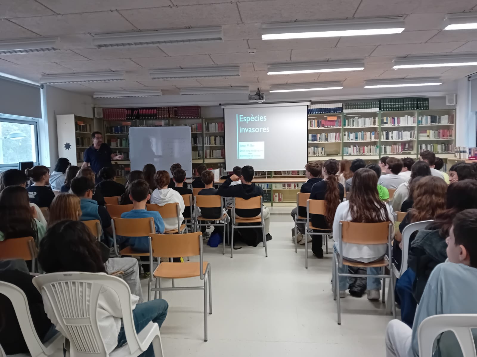 1r ESO. Avui, dins el marc de la Setmana de la Ciència, l’alumnat de 1r d’ESO ha assistit a la xerrada del zoòleg Josep Ma Bas de la UdG sobre espècies invasores. Ha estat molt interessant.”