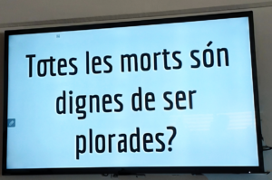 Davant del context bèl·lic mundial, l’alumnat Filosofia de 4t d’ESO ha estat treballant, partint de preguntes com: La vida és valuosa? La vida té preu? Quant val una vida? Totes les vides valen igual? i la mort? Tots els morts valen igual? Qui o què posa preu a les vides? Qui o què posa preu a les morts? Totes les morts són dignes de ser plorades?