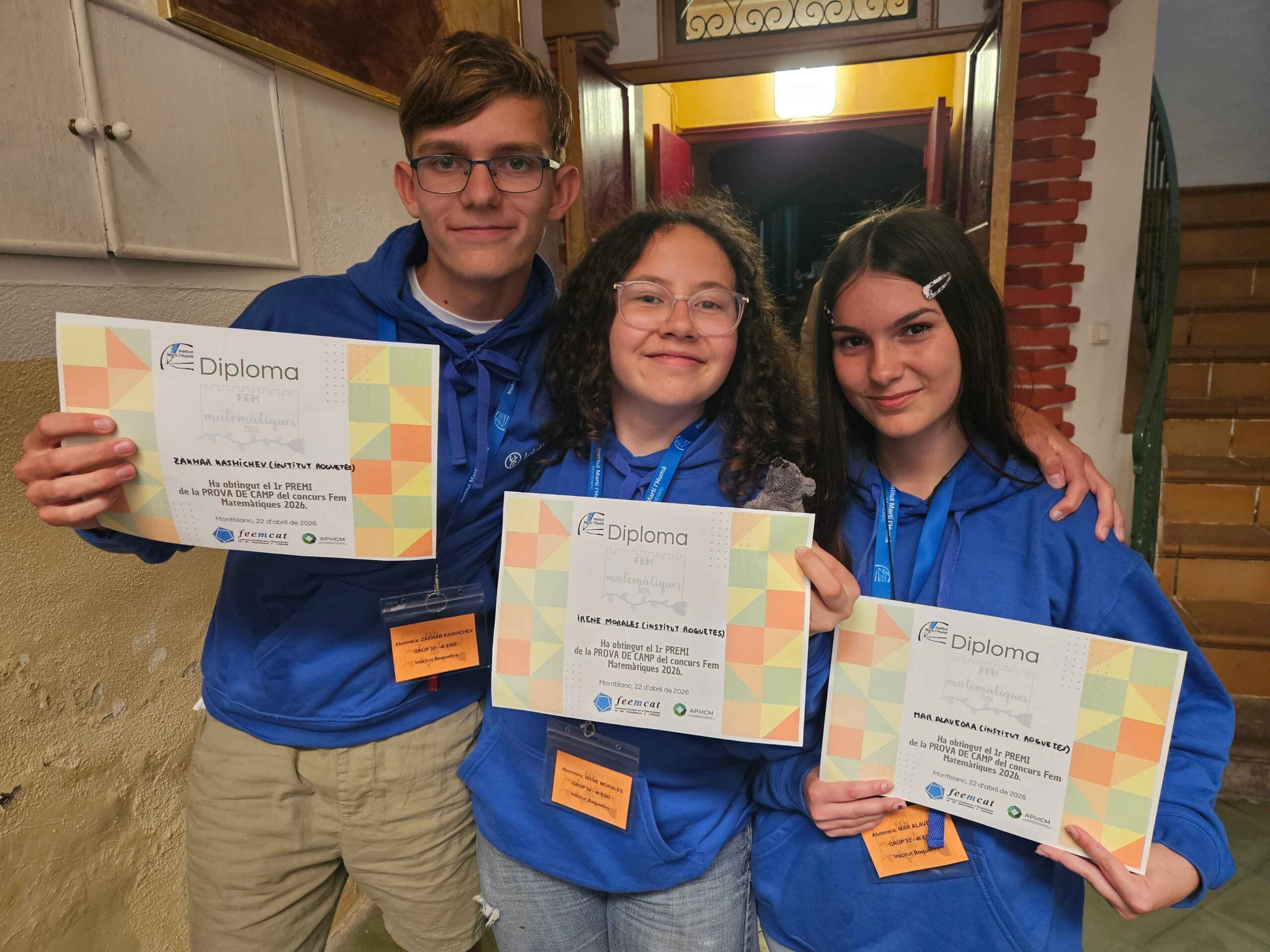 El dia 22 d’abril va tenir lloc la 2a Fase del Fem matemàtiques a Montblanc organitzat per l’institut Martí i l’Humà. Va ser una jornada molt completa, primerament, van fer una prova ràpida de grup, després una prova de camp pels carrers de Montblanc engalanats de llibres, roses i dracs i, per la tarda, la prova individual. Aquesta prova individual es sabran els resultats més endavant. En acabar totes les proves, van donar els premis de la prova ràpida i de la prova de camp. Hem de felicitar al grup de 4t d’ESO ja que van ser els guanyadors del primer premi a la prova de camp!